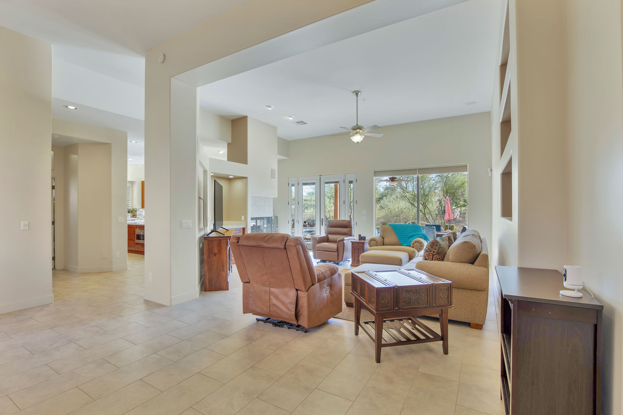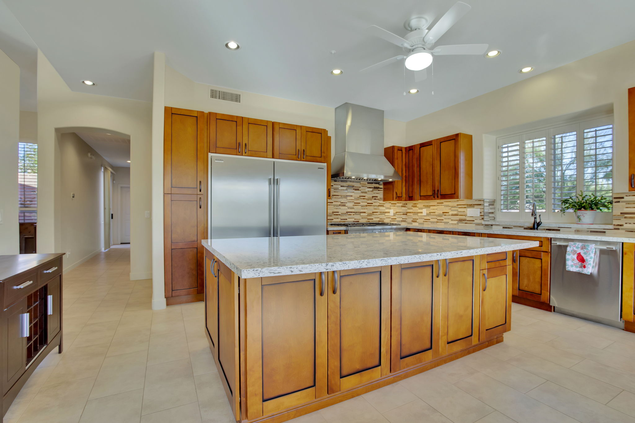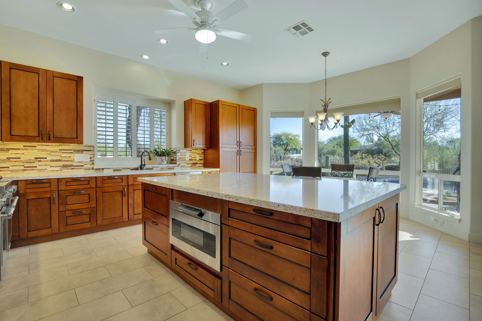 North Scottsdale Masterpiece with Dream 6-Car Showroom Garage for Enthusiasts! Nestled in the heart of Scottsdale's coveted 85266, this 2,700 sq ft desert gem seamlessly combines modern luxury with the natural beauty of the Sonoran Desert. Sitting on over three-quarters of an acre cul de sac lot & backing to a serene wash, the home invites frequent wildlife visitors, adding a unique touch of nature to your backyard oasis. Designed for both comfort & style, the single-level ranch features a spacious split floor plan with soaring 10-12 ft ceilings, plantation shutters, dual-paned windows, tall baseboards & newer flooring throughout. The gourmet kitchen is a chef's dream, boasting an oversized island, Thermador 6-burner range with griddle, commercial-grade built-in refrigerator, lighted pantry, and sleek self-closing SOLLiD (locally built) cabinetry. A car enthusiast's paradise, the 6-car tandem garage comes complete with epoxy flooring, built-in cabinetry, utility sink, its own mini-split HVAC unit, & even fire sprinklers, and much more!