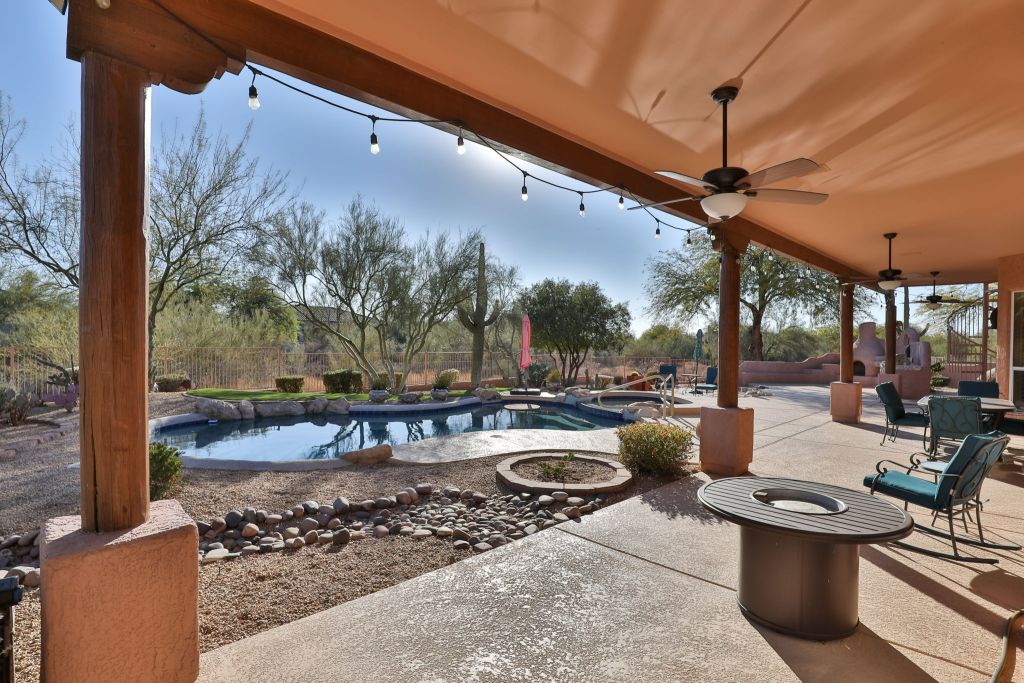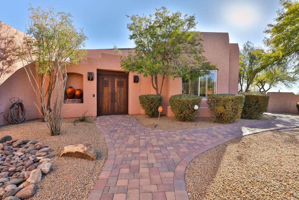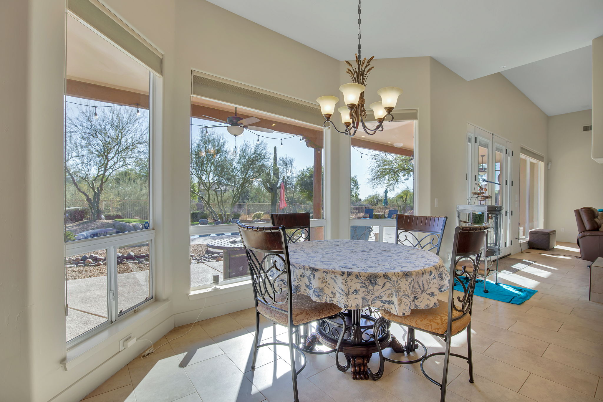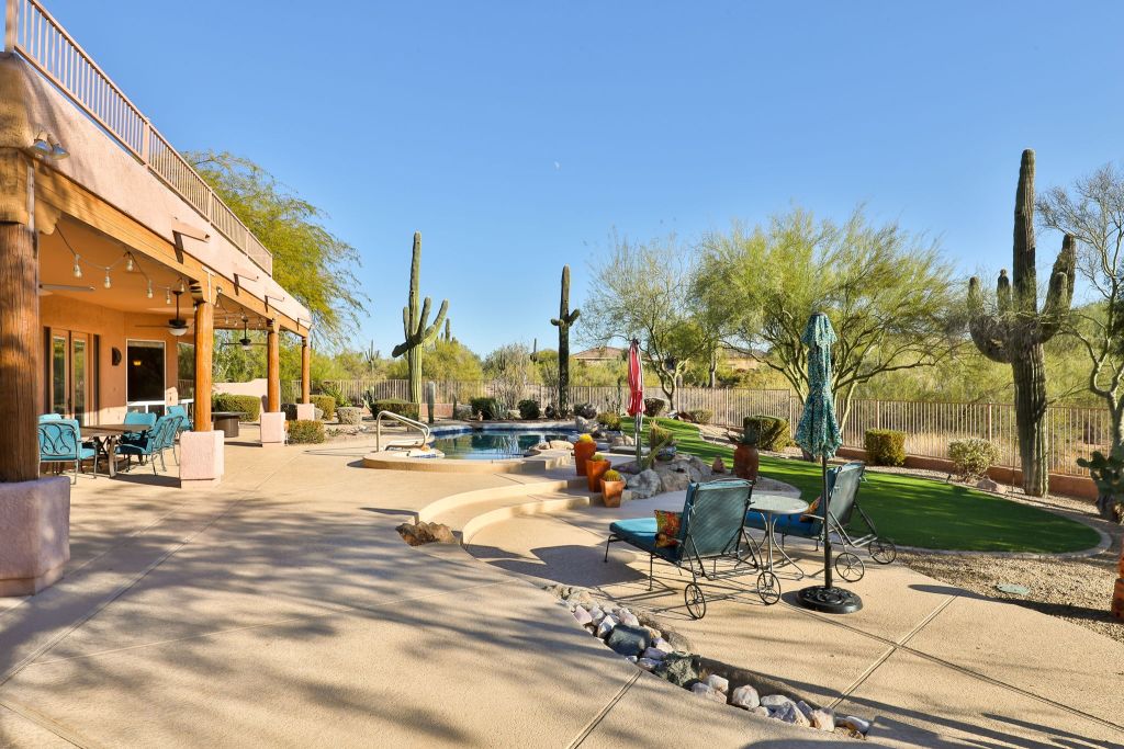 North Scottsdale Masterpiece with Dream 6-Car Showroom Garage for Enthusiasts! Nestled in the heart of Scottsdale's coveted 85266, this 2,700 sq ft desert gem seamlessly combines modern luxury with the natural beauty of the Sonoran Desert. Sitting on over three-quarters of an acre cul de sac lot & backing to a serene wash, the home invites frequent wildlife visitors, adding a unique touch of nature to your backyard oasis. Designed for both comfort & style, the single-level ranch features a spacious split floor plan with soaring 10-12 ft ceilings, plantation shutters, dual-paned windows, tall baseboards & newer flooring throughout. The gourmet kitchen is a chef's dream, boasting an oversized island, Thermador 6-burner range with griddle, commercial-grade built-in refrigerator, lighted pantry, and sleek self-closing SOLLiD (locally built) cabinetry. A car enthusiast's paradise, the 6-car tandem garage comes complete with epoxy flooring, built-in cabinetry, utility sink, its own mini-split HVAC unit, & even fire sprinklers, and much more!