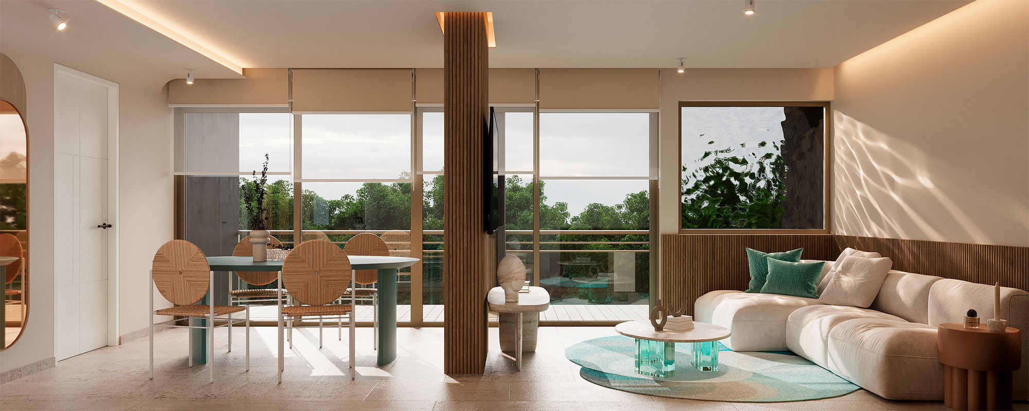 Terraces and private pools in select units.