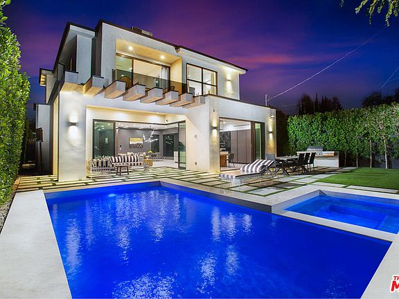 Stunning 2019 new construction in the heart of Valley Village/Studio City. The massive walnut front door of this modern masterpiece welcomes you to the perfect blend of indoor/outdoor flow and a must-see open space design. A perfect balance of modern yet cozy professionally designed for Feng Shui in every room with unique high ceilings throughout the entire home and designer faux fire places with customizable light and warmth settings on each floor. Gourmet kitchen with top of the line Miele appliances and spacious large island with custom cabinetry, ample storage and lighting throughout. The kitchen presents a professional grade refrigerator that possesses high-end touch sensor technology. Fully equipped control 4 smart home that controls Sonos speaker zones both indoors and outdoors , Lutron custom lights and mood settings, spa lights, air conditioning, security cameras, intercom, gates and security system. High end Aquabrass plumbing fixtures as well as solid walnut doors throughout the house. The floating wood stair case with elegant glass railings is complimented with a self watering planter underneath and massive custom interior windows for endless natural lighting. The luxurious Italian tiles in the living room and kitchen flow smoothly into the outside as well via the custom sliding doors opening up the home entirely, becoming one with the private backyard encompassed by fully mature trees and ficuses to allow for privacy on all levels. Outside is Where you will discover a beautiful sheltered sitting area, outdoor kitchen, artificial grass yard that self-waters if needed for your beloved pets along with a luxurious pool and spa with fountain features. Once you retreat upstairs, you will discover continued high ceilings, two private covered balconies, vaulted ceilings, custom bathrooms , designer black-out curtains and light fixtures along with a centralized laundry room with high-end, touch activated washer and dryer. Turning into the primary suite, you are invited once again with open space and a perfectly harmonized entry into the spacious primary bathroom inclusive of a premium soaking tub with a view, vanity area and a massive couples steam shower. Off the primary, the glass sliding door opens up to a large private balcony with thoughtfully placed glass railings to leave unobstructed views. The luxurious primary closet is equipped with custom cabinetry, an island and ambience lighting to leave you feeling like you entered your very own private boutique. This property is upgraded with a whole-home water softener to filter out hard metals in water to nourish skin and hair. Two-car garage. Security gate, pedestrian gate and side gates as well as artificial grass turf in the front yard with a dedicated patio for the downstairs guest bedroom. A rare listing Located in one of the most sought-after, tranquil celebrity neighborhoods in Studio City with Close proximity to restaurants and shops on Tujunga Blvd and a just a walk to the popular local farmers market. Only a ten minute drive to Hollywood and 20 minutes to Beverly Hills!