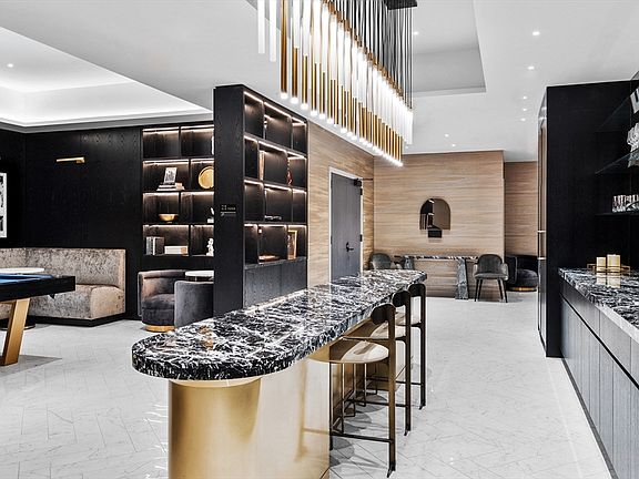 IMMEDIATE OCCUPANCY. The Parker is a luxury condominium building in the Theater District, featuring 168 articulately designed studios, one bedroom, and two-bedroom penthouse residences. Centrally located, it offers a 24-hour concierge with speakeasy-inspired indoor and outdoor amenities by Zarifi Design. Residences feature a clean design with unexpected details such as sculptural floor-to-ceiling windows and wide-plank white oak flooring. The kitchen boasts a custom Italian marble backsplash with brass finishes and a rich color palette combining materials and textures to create a sleek, dynamic aesthetic. Amenities include a cocktail lounge, billiards room, private screening room, and are rounded out by a state-of-the-art fitness center and a roof deck perched atop Boston Common with spectacular views of the Back Bay, sunsets over the Charles River, and Financial District.