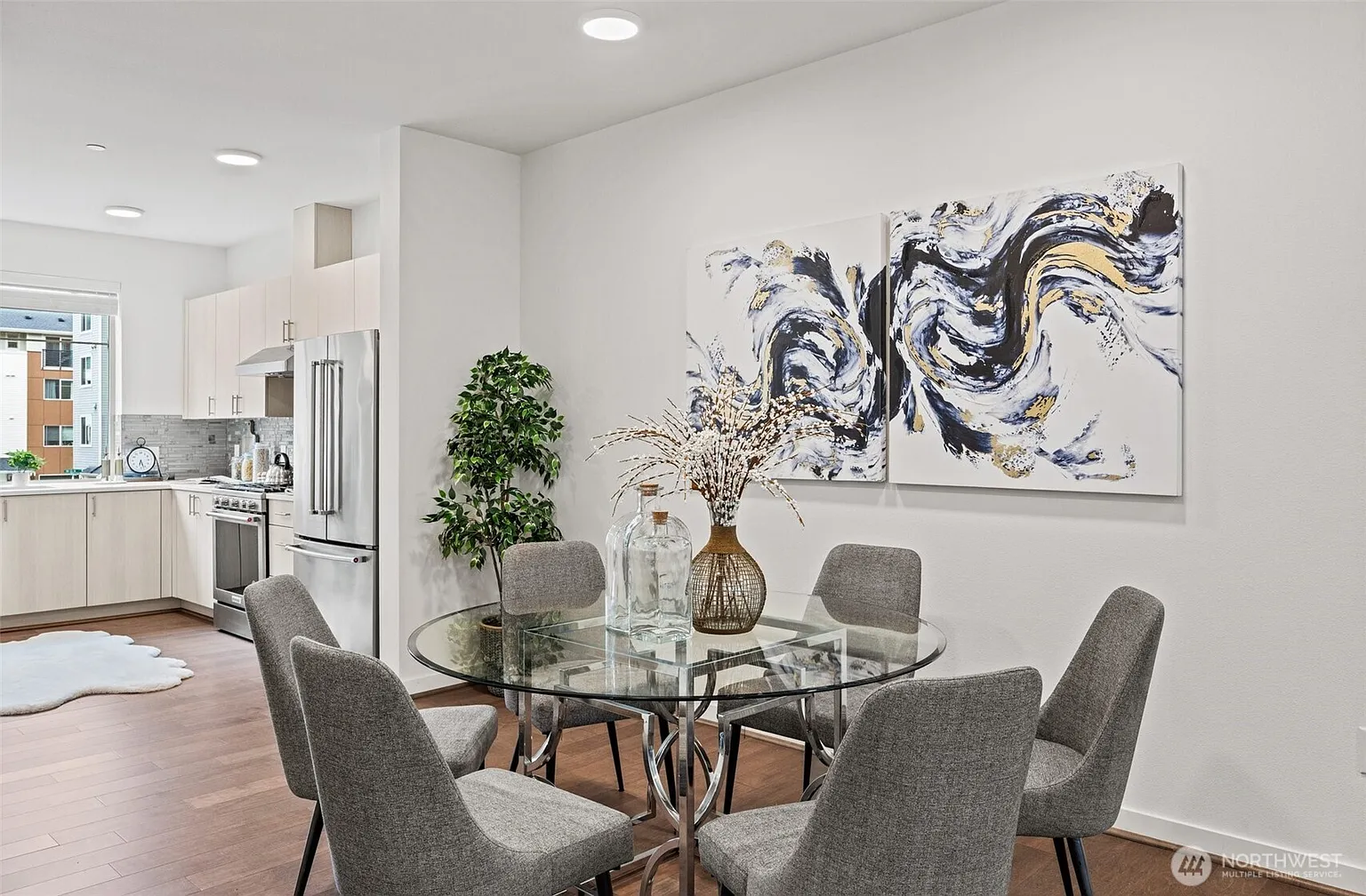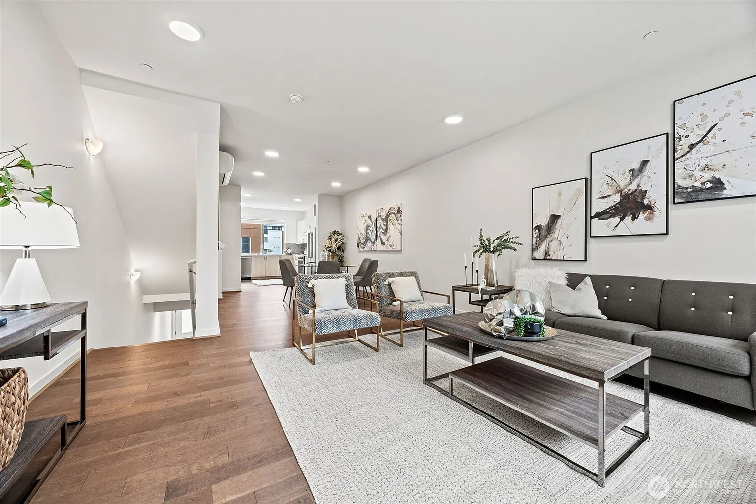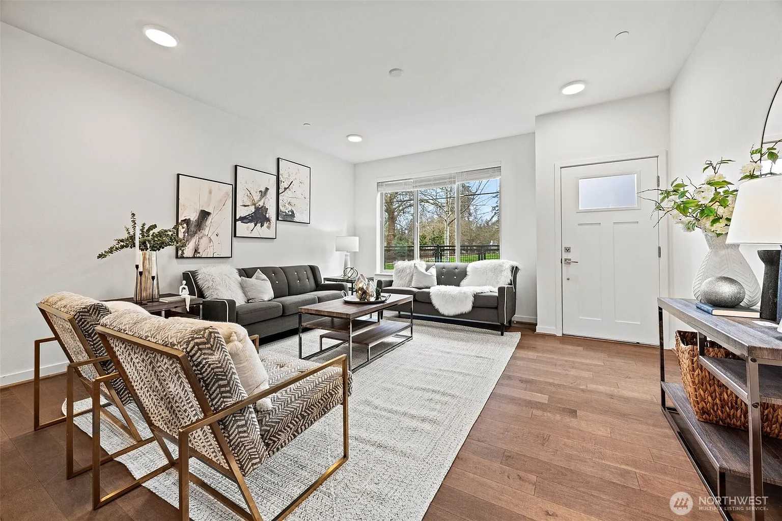 Rare park-facing townhome w/ abundant natural light in Upton at Crossroads! Open dining flows seamlessly to a private balcony w/ serene park views—an unbeatable feature! High ceilings, expansive windows & elegant hardwoods enhance the airy feel. Chef's kitchen boasts quartz counters, SS appliances, gas range, tile backsplash, soft-close cabinets & oversized island. Versatile loft bonus space for office/lounge. Each BR has its own bath for ultimate privacy. A/C, oversized 2-car tandem garage, well-run LOW HOA covers water/sewer, NO RENTAL CAP! NO Special Assesmt. Prime location—steps to Crossroads Mall, dining, golf & mins to Microsoft, Redmond Tech & top Bellevue schools! PRE-INSPECTED & move-in ready. Best unit in complex. 2019 built.