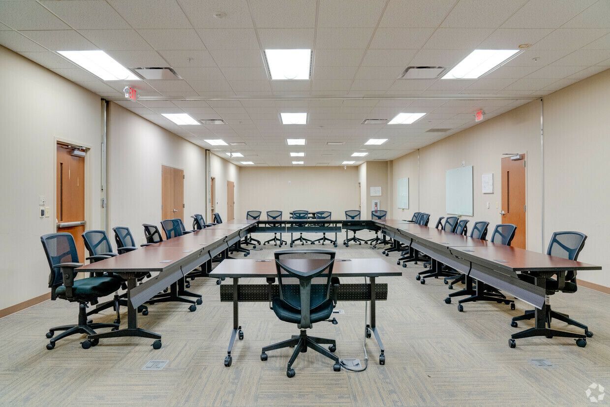 The property is comprised of multiple welcoming reception areas, a training center with room partitions, multiple meeting rooms, large open spaces throughout, two spacious break rooms and lounges, designated coffee zones, large restrooms with lockers and showers, an assembly and repair section, a loading dock, computer server rooms, two power generators, and two sprinkler risers.