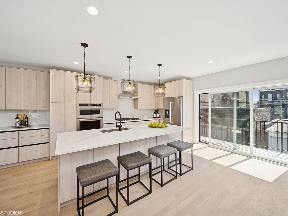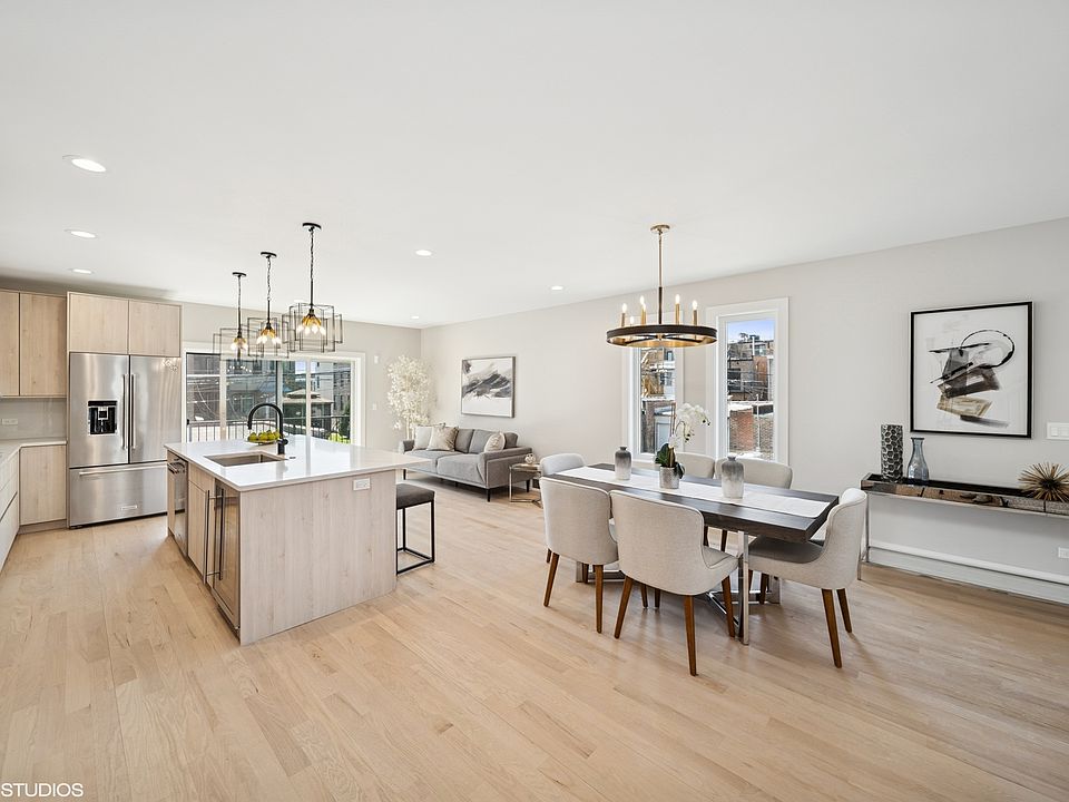 Experience elevated city living in Bronzeville. ArtisanGalanta is a limited collection of six beautifully designed three-story row homes perfectly blending refined comfort, contemporary elegance, and exceptional functionality. These striking residences feature impressive 13-foot ceilings, dramatic 10-foot windows, and open-concept layouts that maximize natural light and create a seamless flow. The dramatic two-story living room, anchored by a sleek fireplace, is a stunning centerpiece ideal for relaxation and entertaining. The chef-inspired kitchen is truly the heart of the home, showcasing a large 9-foot island with seating for four, custom 42" flat-panel cabinetry, quartz countertops, designer tile, and premium stainless-steel appliances, including a double oven, built-in microwave, French door refrigerator, and wine fridge. Adjacent to the great room, a private balcony offers an ideal setting for enjoying your morning coffee or dining al fresco. Upstairs, the luxurious primary suite is designed as a true retreat, offering ample space for a king-size bed and a sitting area. The spa-inspired ensuite bath features a soaking tub within a glass-enclosed wet room and a double vanity. Two additional well-sized bedrooms, each comfortably fitting a queen bed, and a full bath complete the upper level. Throughout each home, you'll appreciate the harmonious blend of modern luxury, timeless design, and thoughtful details.ArtisanGalanta's ideal location in the vibrant Bronzeville neighborhood offers convenient access to the Green Line, CTA buses along Cottage Grove Avenue and King Drive, and major thoroughfares like Lake Shore Drive and I-90/94. A short walk will take you to Chicago's beautiful lakefront parks, beaches, and numerous activities. You'll also enjoy the convenience of nearby shopping options, including Mariano's, Walgreens, and Jewel, with Whole Foods and Trader Joe's just a short bike ride or drive away. The neighborhood also boasts local culinary gems such as Two Fish, Ain't She Sweet Cafe, Truth Italian Food, and Simply Soups. These exceptional homes are currently under construction. Call today to schedule a private tour and explore the exciting opportunity to personalize your new home.