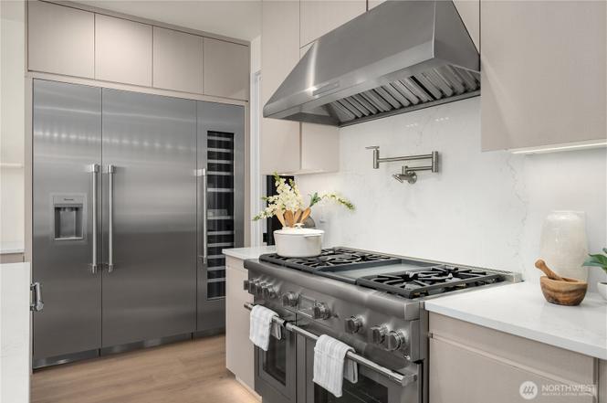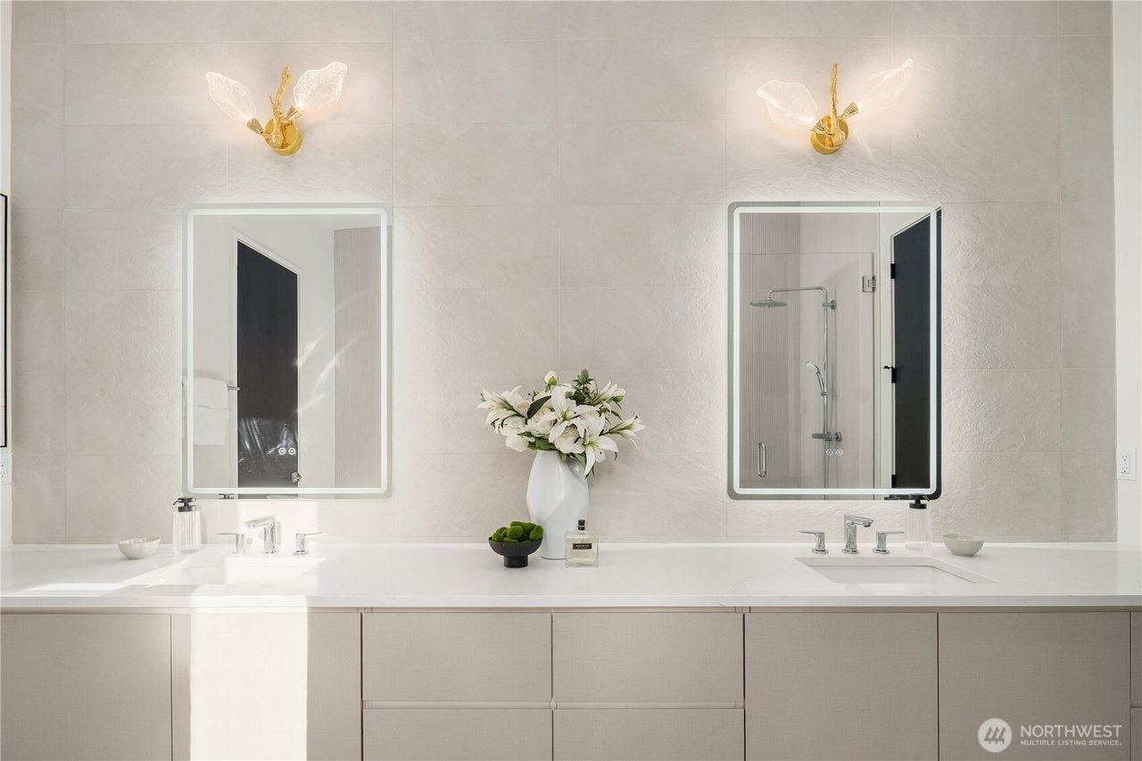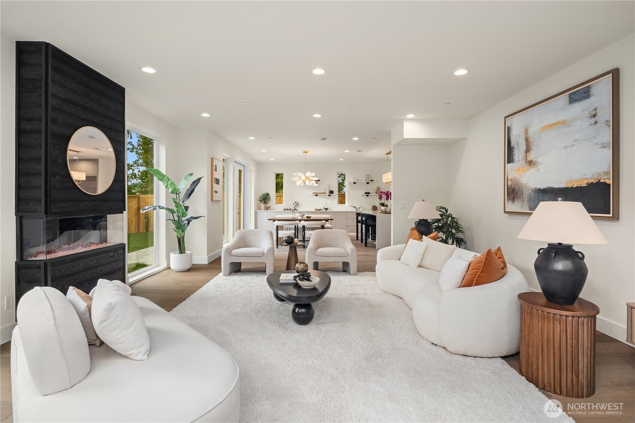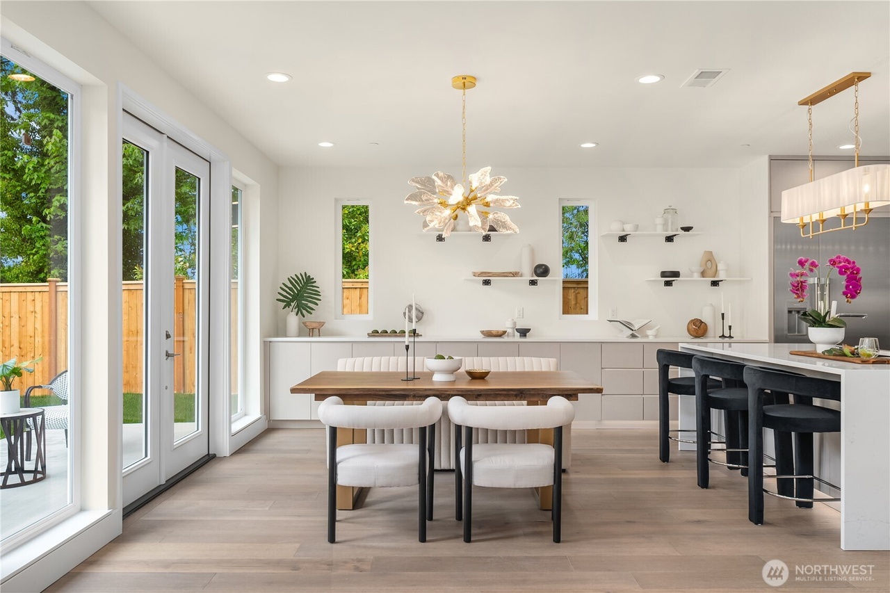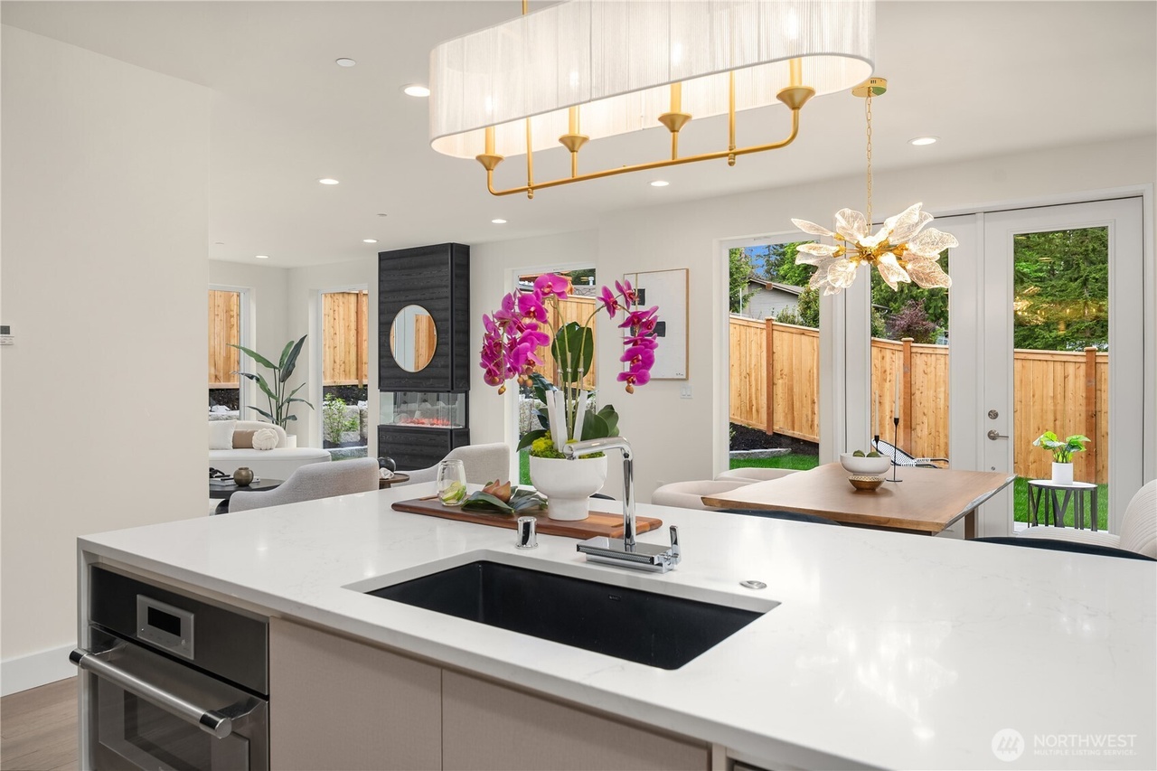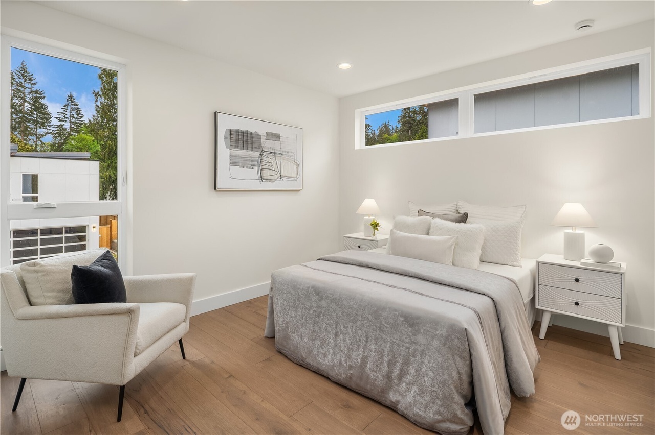 MOVE IN READY. NO HOA. Discover refined living in this Japandi-inspired 5BD/5BA home in sought-after SE Bellevue. Designed with modern elegance, the home features soaring 9'–12' ceilings, an open-concept living/dining area, private guest ensuite, a versatile office/den. The chef’s kitchen boasts sleek quartz countertops, premier Thermador S/S appliances & streamlined cabinetry. Upstairs, the serene primary suite offers a spa-like bath, walk-in closet, private balcony, three additional bedrooms-two sharing a full bath, a dedicated laundry room and a second upper balcony. Prime location offering quick access to I-90, DT Bellevue, DT Seattle, premium shopping and dining. A rare combination of serenity, functionality, and convenience.