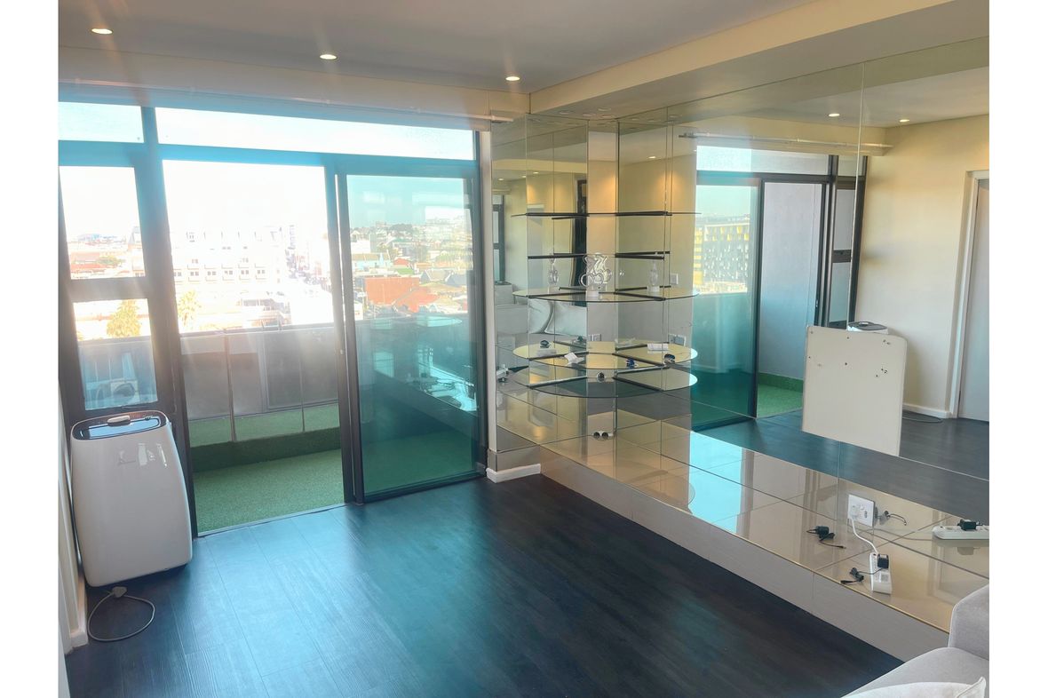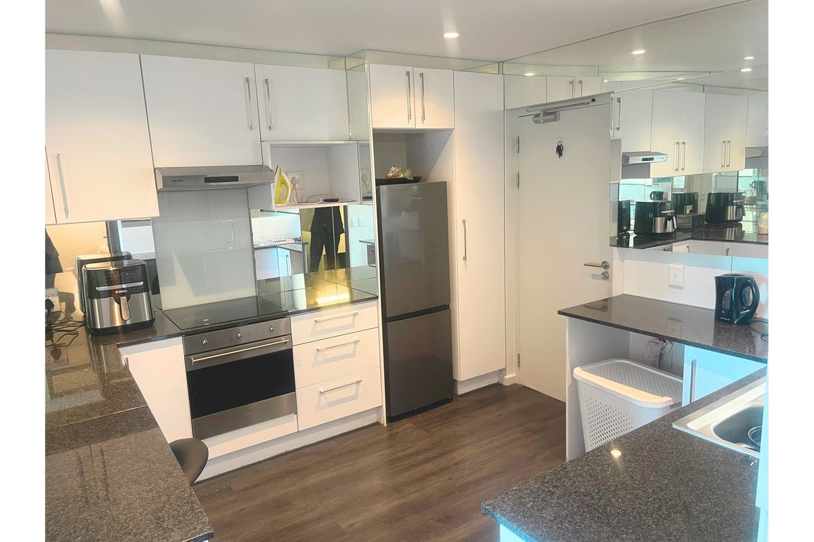 Great opportunity to own a beautiful 2 bedroom, 2 bathroom unit with laminated wooden flooring throughout. The lounge has large mirrors creating an illusion of more space, with sliding doors leading to a lovely balcony with artificial grass and planter boxes from where you can enjoy beautiful sweeping views towards the Paarl mountains in the distance and Devil's Peak views to your right. The beautiful fitted kitchen offers ample storage space, granite tops, a glass top stove with oven, extractor fan and one plumbing point. The bedrooms have ample storage space and the bathrooms are both en suite and beautifully tiled from floor to ceiling.