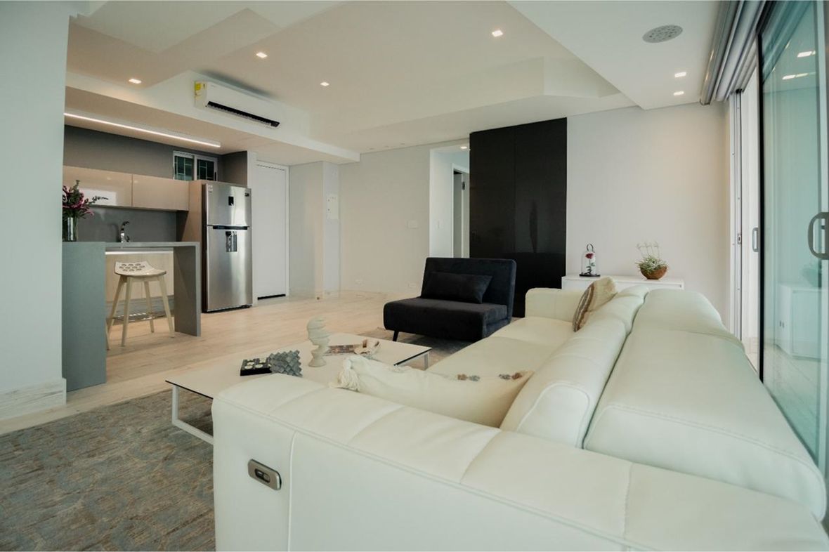 Remodelado con estilo moderno y acabados de lujo. Espacios amplios y funcionales: sala extendida con vista directa al mar, habitación tipo suite, 2 baños completos, cocina abierta y un espectacular balcón con vista sin obstrucciones al océano.