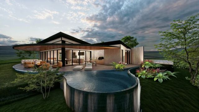 The expansive social spaces include multiple covered terraces and a sun-drenched deck, ideal for hosting or unwinding. A cozy family lounge adds warmth, while an infinity-edge tranquility pool offers stunning views over the natural landscape - a perfect retreat for relaxation and entertaining.