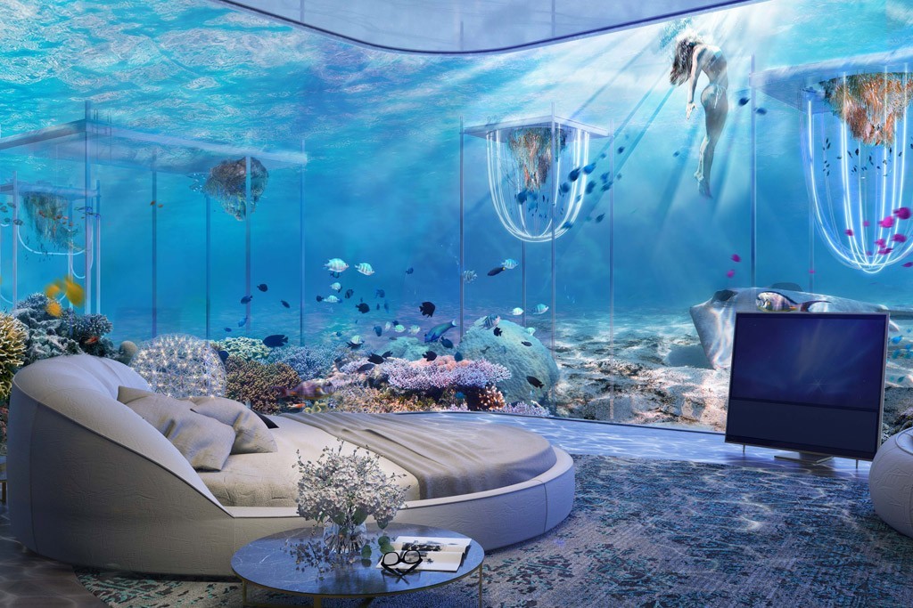 Whether in their rooms, dining, or simply relaxing; guests can enjoy the best of both worlds – stunning Dubai skyline views and, below the waterline, wide scenes of passing gondolas and the coral reefs and marine life below.