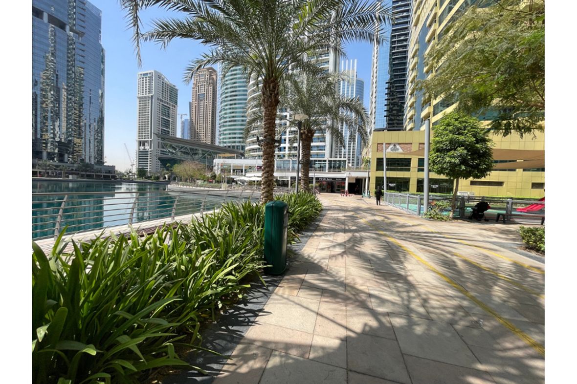 Located around three scenic lakes and a central park, Jumeirah Lakes Towers (JLT) features a blend of residential apartments, office spaces, and hotels. Almost every tower includes shops, restaurants, cafés, and other conveniences at its base. The community is organized into 26 clusters, and the park often hosts events such as outdoor movie nights, markets, fitness sessions, and more.