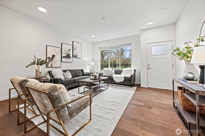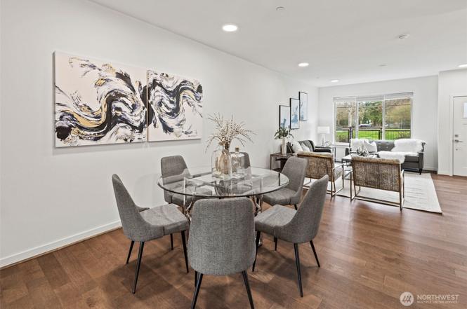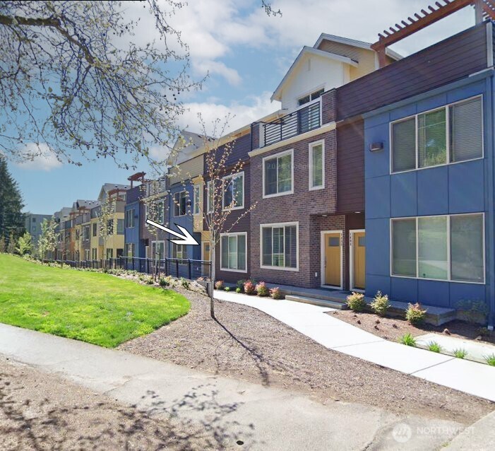Park-facing Upton townhome offering privacy, greenery, & all-day natural light w/ no neighbors in front. Built in 2019 by William Lyons Homes, this well-designed unit lives like a single-family home with a MAIN LEVEL ENTRY, open-concept kitchen, living & dining, soaring ceilings, A/C, & a flexible loft perfect for office, gym/media use. Enjoy tranquil park views from your private balcony. Thoughtful layout incl TWO EN-SUITE bedrooms + a third bedroom w/ its own full bath. Chef's kitchen w/ quartz counters, gas range, stainless steel appliances, tile backsplash, & oversized island. Oversized 2-car tandem garage w/ lower-level entry. Walk to Crossroads Mall, parks, dining, golf. Minutes to Microsoft. Pre-inspected, low HOA. No rental cap!