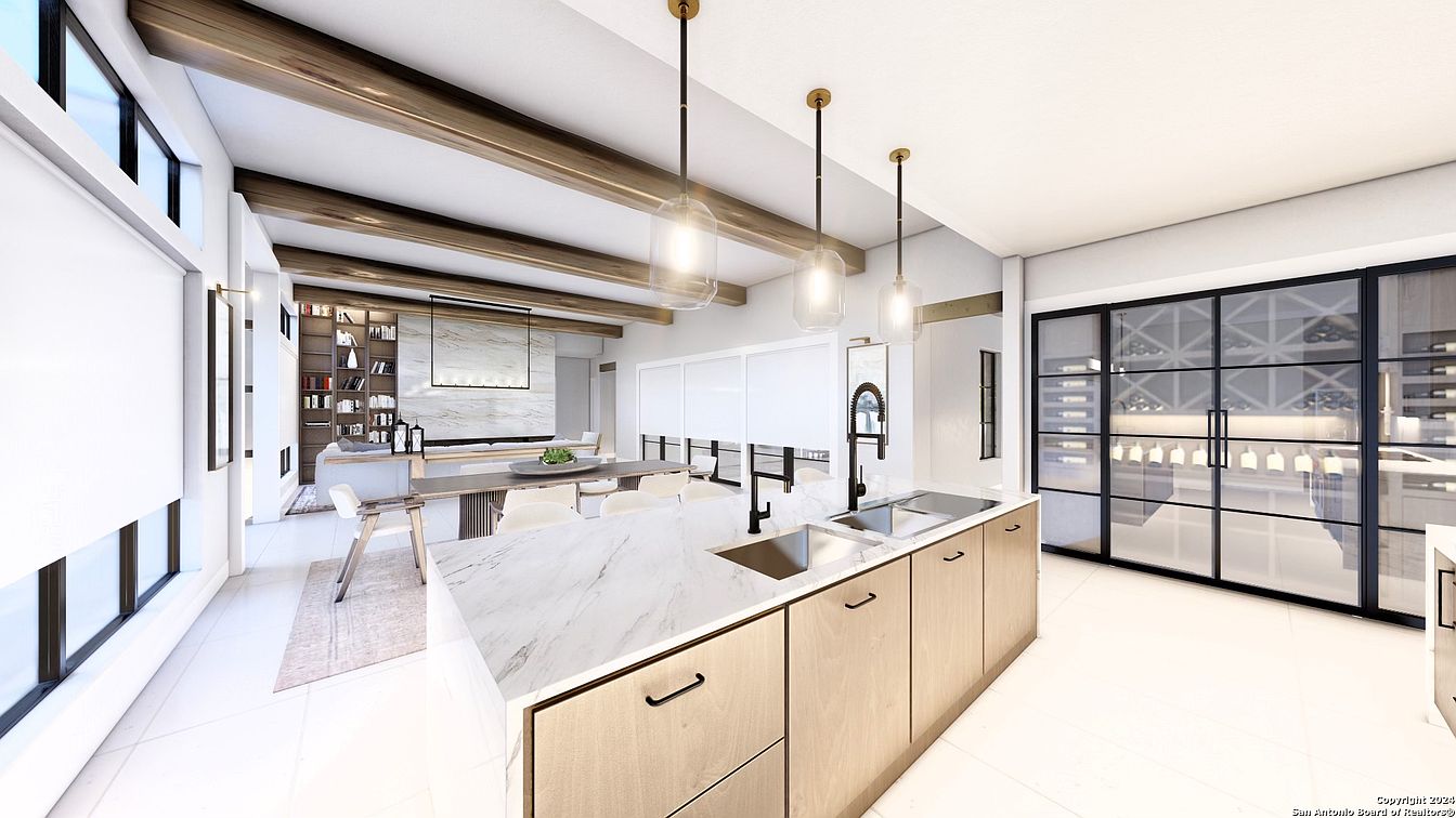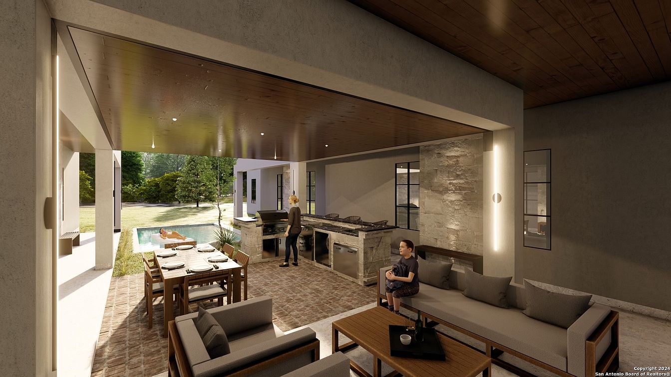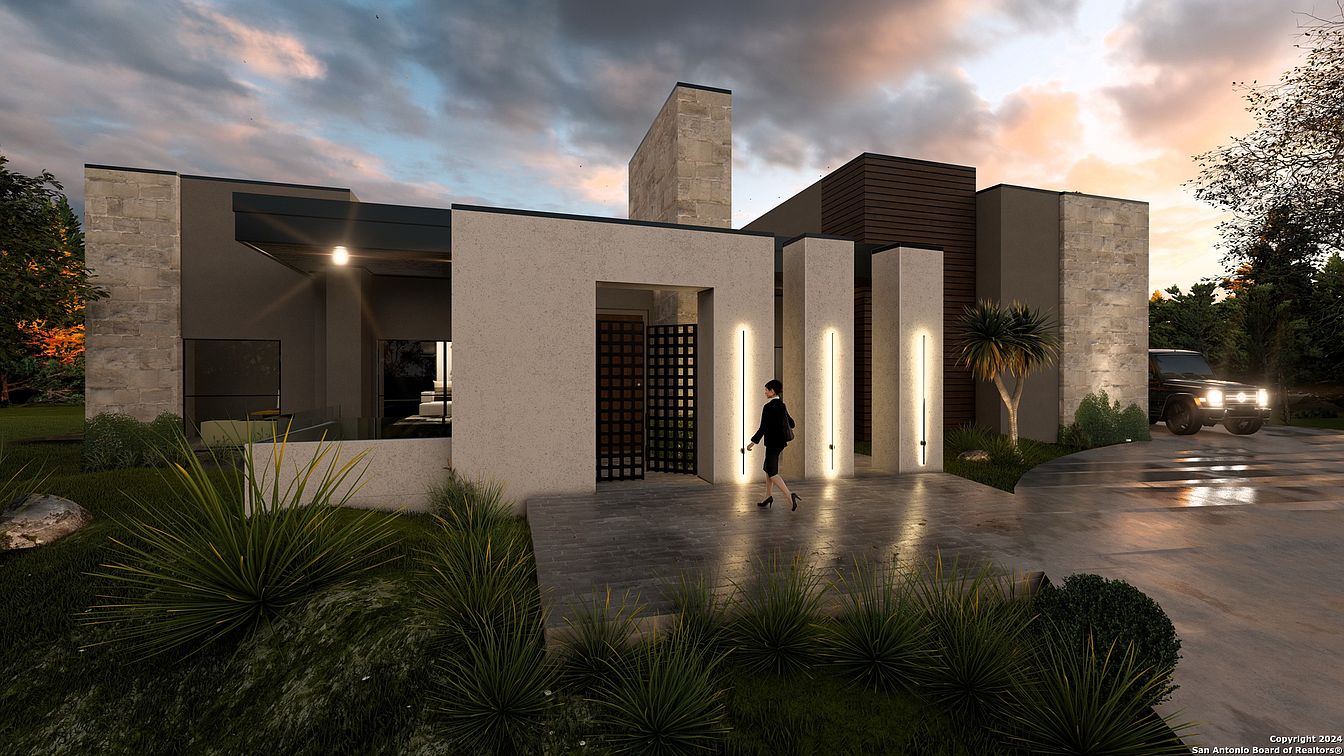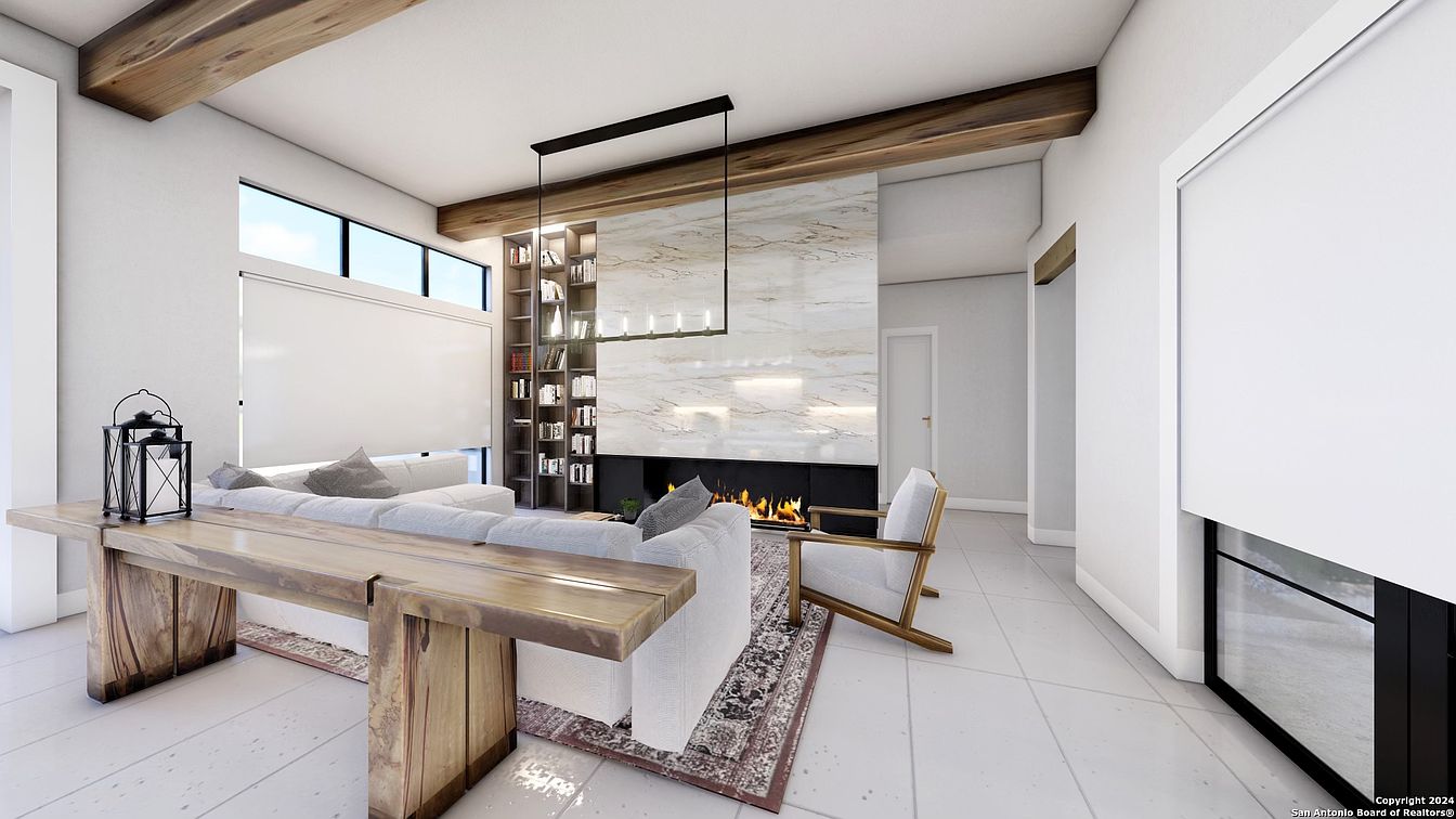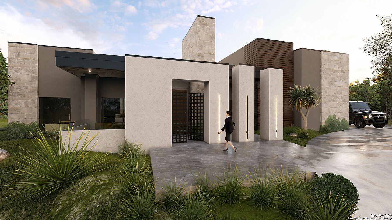 Contemporary masterpiece by Olive Tree Custom Homes! This sophisticated 5 bed, 6 full bath home is a seamless integration of stunning architecture and impeccable interior design, infused with smooth styling. Explore this inviting, contemporary Custom Home. The single-level floor plan is flooded with abundant natural light. Warmth essence easily controlled by remote-controlled electric fireplace. Additional high-end details include handsome artistic ceramic floors (which allows you to deep clean areas), stunning outdoor living, upscale light fixtures and a gourmet island kitchen. The state-of-the-art kitchen offers stainless steel CAFE appliances, stunning wine storage, tile backsplash, sleek quartz counters. The convenient and spacious patio is the ideal outdoor space for both formal and casual entertaining with an enjoyable same-level swimming pool specially and carefully designed. Homeowners are sure to enjoy entertaining guests within the open-concept living/dining, inside/outside area. Generous accommodations include a beautiful, secluded master bedroom with luxe private bath as well as a generously sized walk-in closet and mini bar. Four secondary bedrooms with individual bathrooms and spacious closets. The office features views of the front yard. This pet-friendly home offers the utmost in luxury and convenience including cleaning, privacy and surround audio system gadgets as iRobot, Ring and Echo WiFi Sound System.
