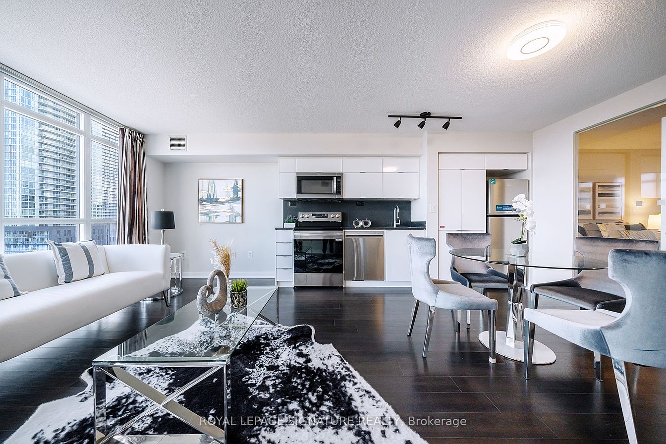 Bright and modern two plus den condo perfectly situated in Toronto's vibrant waterfront community. This well-designed unit features a spacious open-concept layout with floor-to-ceiling windows, filling the space with natural light. The contemporary kitchen is equipped with stainless steel appliances, granite countertops, and ample cabinetry. Enjoy a private balcony with stunning views. Residents have access to fantastic amenities including a fitness center, swimming pool, party room, and 24-hour concierge. Just steps to the lake, parks, TTC, Rogers Centre, CN Tower, restaurants, and shops. Urban living at its best!