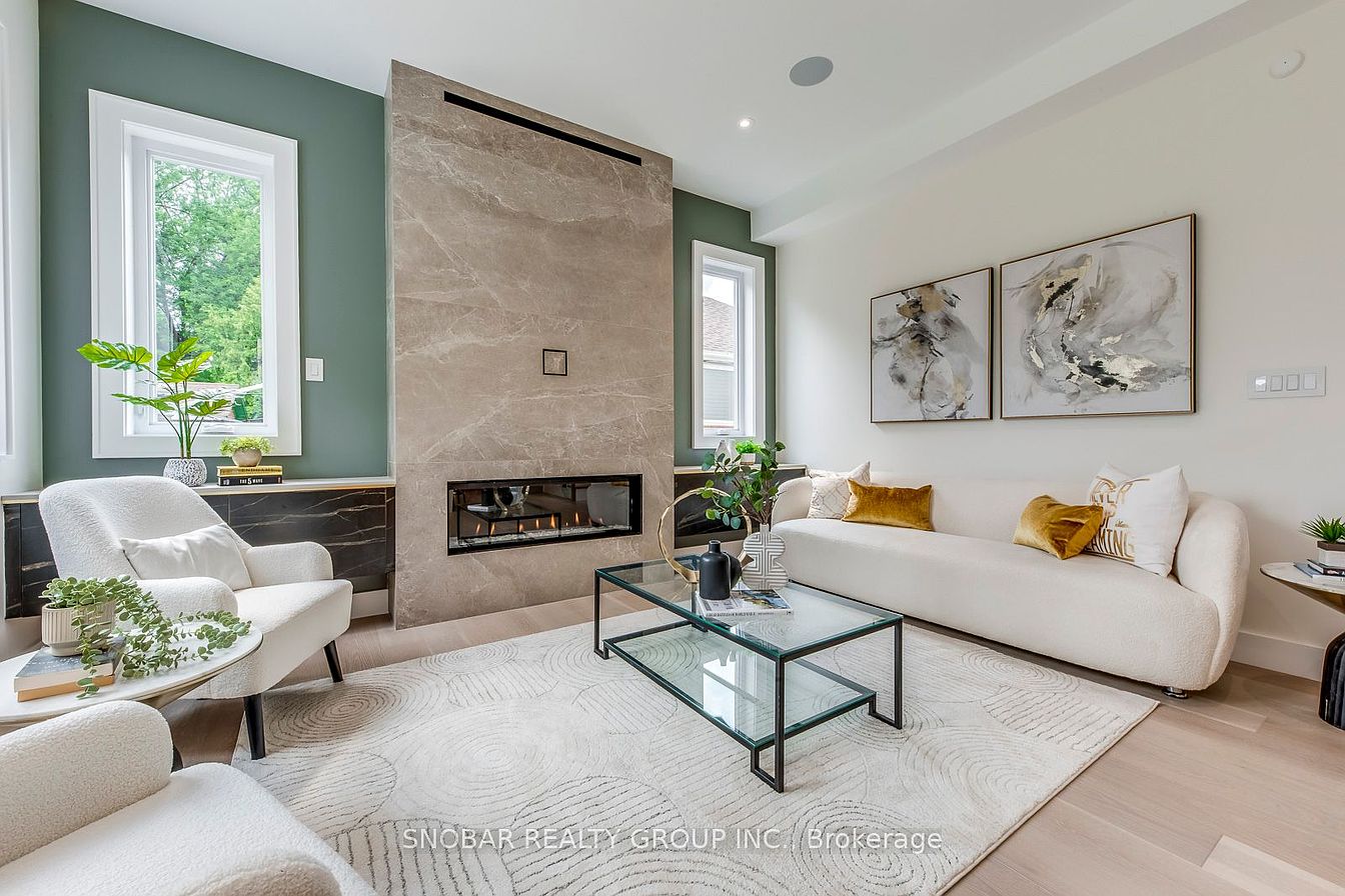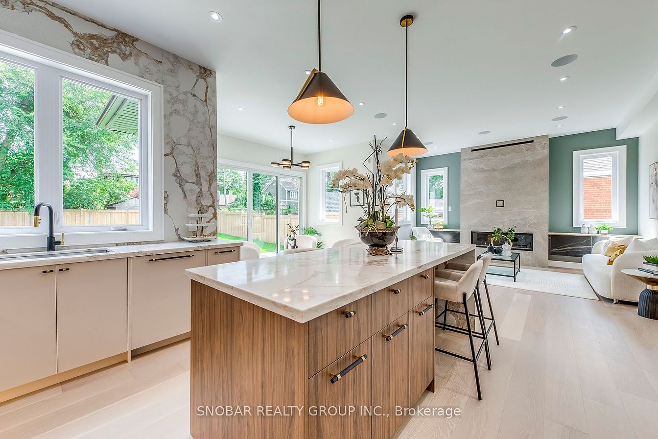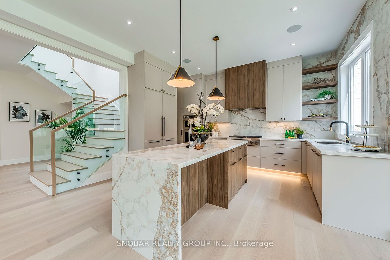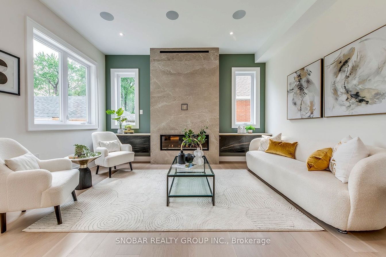 Welcome to this brand-new, custom-built luxury residence ideally located in the heart of Etobicoke! Steps from top-rated schools, parks, skating rinks, tennis courts, fine dining & more. Designed for the modern family & elevated entertainer, this home combines timeless architecture, contemporary finishes & smart home tech. The main floor features 10 ceilings, a private home office, white oak staircase with glass railing, hardwood floors throughout, and abundant natural light. The open-concept layout centres around a custom dream kitchen with sleek cabinetry w/ hidden pantry, quartz countertops, large island, & built-in high-end appliances. Enjoy seamless flow into a spacious living area with fireplace ideal for both everyday living & entertaining. With 5 expansive bedrooms, 4.5 Lavish Bathrooms, every detail is intentional and inspiring, including the jaw-dropping primary suite with a walk-out balcony and spa-like ensuite. The landscaped backyard includes wide walk-out stairs to a basement featuring a legally permitted second dwelling unit. This space offers a large bedroom, roughed-in kitchen, 2nd laundry room & ample storage perfect for in-laws, guests, or rental income. Bonus: an oversized garage, in-ceiling speakers, security system & smart home wiring. A rare opportunity to own a home that balances functionality, luxury & an unbeatable Etobicoke location!