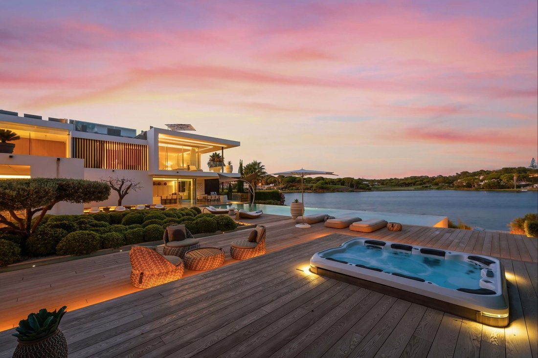 Set on a prime, ultra-exclusive waterfront plot in one of the Algarve’s most sought-after addresses, this extraordinary lakefront villa in Quinta do Lago presents a rare opportunity to acquire a property of unparalleled calibre. Designed by renowned architect Vasco Vieira and with exquisite interior design by Pure Allure, this stunning contemporary villa includes a golf title and enjoys direct access to the lake via its own private jetty. Properties of this stature and setting are seldom available on the local market. This is a property that delivers a wow at every turn, a home that blends serenity with sophistication, relaxation with entertainment. Located in the heart of Quinta do Lago’s most desirable lifestyle zone, this home is just a short walk to a vibrant social and lifestyle scene, including iconic spots like Casa do Lago, The Shack, Umami and Bovino, The Campus Sports Hub, Ria Formosa Nature Reserve and the beach, making it the ultimate family escape.From the moment you arrive, this residence is designed to impress. A dramatic double-height entrance opens into a large atrium bathed in an abundance of natural light, which highlights each of the home’s unique features. Expansive floor-to-ceiling glass walls flood the interiors with sunshine and frame uninterrupted views that immediately draw the eye toward the tranquil lake beyond. The large-format marble flooring flows gracefully throughout the main living spaces and seamlessly continues onto the outdoor terraces, creating a harmonious connection between indoors and out.The formal lounge exudes contemporary elegance, featuring a suspended statement fireplace and warm wooden flooring, with direct access to a chic poolside lounge and covered games terrace, which is perfectly positioned adjacent to the Jacuzzi zone for relaxed entertaining. The living area transitions effortlessly into an inviting dining space and a cosy TV snug, complete with a gas fireplace and slatted wood feature wall that adds architectural warmth. At the heart of the home lies a designer Gaggenau kitchen, sleekly designed and fully equipped with an induction hob, wine fridge, concealed tea and coffee station, and a stylish breakfast bar. Ideal for hosting, this gourmet space flows naturally into the outdoor kitchen, where an electric hot plate, Broil King BBQ, sink, and al fresco dining area await, set against a backdrop of breathtaking, panoramic lakeside views.Seven bedroom suites are thoughtfully spread across all levels of the home, offering privacy and space for guests and family alike. Three suites are positioned on the ground floor, each with direct access to a south-facing terrace. Two further suites, including the magnificent primary bedroom, occupy the first floor. The primary suite is a sanctuary of space and light, with a huge ensuite bathroom featuring dual walk-in showers, a standalone bath tub, dual sinks, and an expansive walk-in wardrobe. This suite also enjoys access to a wraparound private terrace overlooking the lake and pool, with glimpses toward the golf course. Two additional guest suites are located on the lower level of the property including a home office which could easily be converted into an eighth bedroom, if desired. The lower level of the home is a world of its own - dedicated to leisure, entertainment and wellness. A state-of-the-art home cinema with tiered sofa seating, a games room with a grand piano and pool table, and a stylish bar complete with a Gaggenau coffee machine and wine fridges create the perfect environment for unforgettable gatherings. The boutique-style spa includes a sauna, steam room, indoor pool, treatment room, and a gym cleverly positioned to take in lake views - transforming wellness into an daily indulgence. The rooftop terrace is a standout feature, offering panoramic vistas of the lake, golf course, and out to the Atlantic Ocean. Here, you’ll find a private plunge pool, sunken lounge, outdoor bar with fridge, sink and dishwasher, and a raised lounge area that is ideal for sunset cocktails or stargazing under the Algarve sky.With a private putting green, 8-seater Jacuzzi, and easy access to Quinta do Lago’s premier attractions this property is the epitome of contemporary luxury real estate in Portugal. Whether as a primary residence or an elite holiday retreat, the home balances serenity with sophistication and effortless indoor-outdoor living.With an exceptional rental track record, high-spec finishes throughout, and unbeatable outdoor living spaces this is one of the most unique and impressive homes on the current market. An extraordinary lakeside retreat that captures the essence of contemporary luxury in the Algarve.Liberty Real Estate is specifically focused in the Quinta do Lago and Vale do Lobo areas, ensuring that our clients receive the best and most up-to-date information on the local area and property market.Headed by Rebecca Thomson and Luke Begley, Liberty Real Estate strives to provide a consistent, comprehensive, and bespoke service with accredited market knowledge, expertise, and an outstanding level of professionalism.All Liberty Real Estate clients will receive well-informed advice and guidance in order to make the best choices for their next investment or potential lifestyle change. We look forward to assisting you.