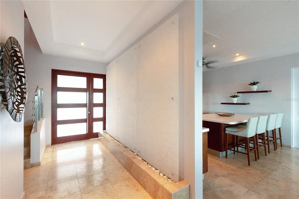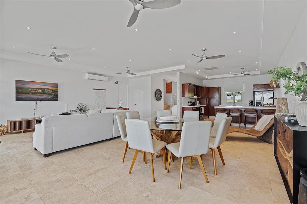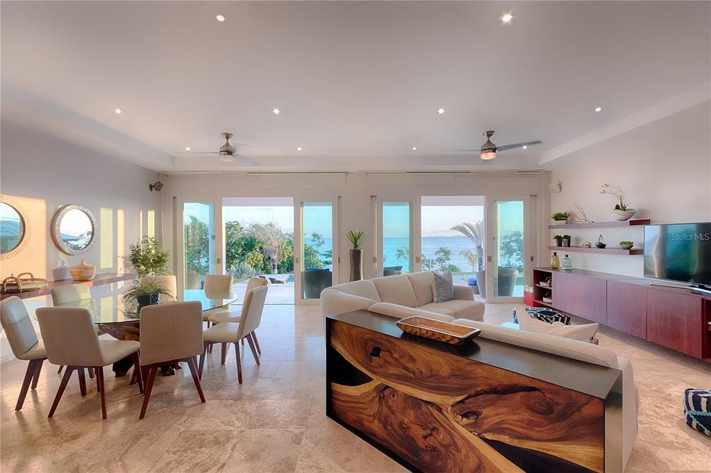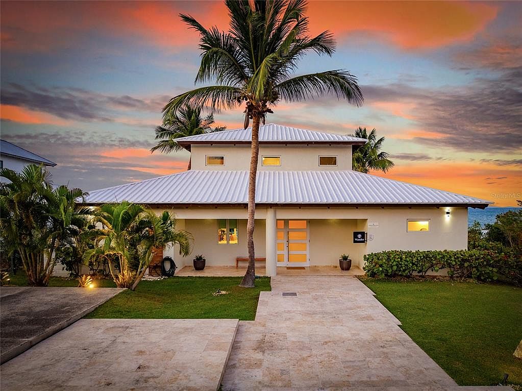 Step into unparalleled beachfront living on Vieques’ serene Atlantic shore at Martineau Belle Playa Villa, nestled within the private, gated Martineau Beach Estates. The villa is perched gracefully above its own protected stretch of golden sand, offering unobstructed views of the sea, nearby islands like Culebra and St. Thomas, and breathtaking sunrises and sunsets. An infinity-edge pool appears to merge with the ocean horizon, while a well-appointed entertainment pavilion and outdoor kitchen invite seamless indoor outdoor gatherings. Designed with tropical elegance and laid-back luxury in mind. The interiors blend coralina marble and wood textures with open-concept living spaces, vaulted ceilings, marble and travertine flooring, and wall-to-wall windows to bring the natural beauty in Three generous bedroom suites all feature spa-inspired en-suite baths, walk-in closets, and private balconies—each capturing ocean breezes and panoramic views. The entire second-floor primary suite stretches the full width of the home and boasts a sweeping balcony with uninterrupted Atlantic vistas. Outside, every detail enhances the island experience: multiple lounge areas, outdoor dining under a gazebo, an outdoor shower, and lush tropical landscaping creates a resort-like ambiance. With high-end amenities including zoned mini-split cooling, and a wet bar, the villa reflects refined comfort paired with Vieques’ relaxed spirit. Whether you're seeking an upscale retreat, investment opportunity, or a canvas for island events, this property delivers exclusivity, privacy, and a true connection to nature.