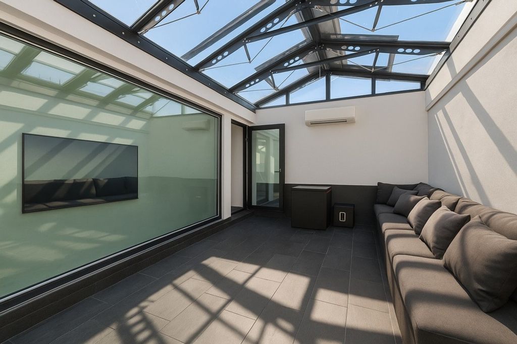 The penthouse includes a vast living area, elegant bedroom, and a state-of-the-art kitchen with top-tier appliances. The rooftop terrace serves as a private retreat above the city with panoramic views and a clear view of the iconic TV Tower—perfect for relaxation or social gatherings. Every detail of the interior, from custom-made furniture to premium flooring, reflects sophistication and exclusivity.