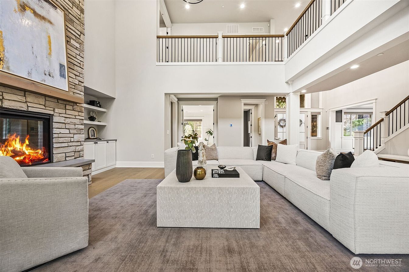 Sophisticated Terrene home (2023) at the end of cul-de-sac in the desirable Montreux community. Purchased Apr ’24 & lived in only 2 mos before relo, this home is BETTER-THAN-NEW. Rare ~½-ACRE LOT w/ long driveway, landscaped low-maintenance yard & outdoor speakers create a private retreat. Walls of windows, soaring ceilings & remote high-end blinds flood the open concept design w/ light. Entertain in the Epicurean kitchen w/ butler’s pantry & formal dining, or relax on the covered deck w/ skylights + DUAL-SIDED FIREPLACE. Main-floor DEN + GUEST SUITE w/ private bath + deck access. Oversized primary suite w/ heated bath floors & expansive WIC. PRE-INSPECTED, mins to I-90 for EASY COMMUTE, near parks, trails, shops, dining & Issaquah SD.