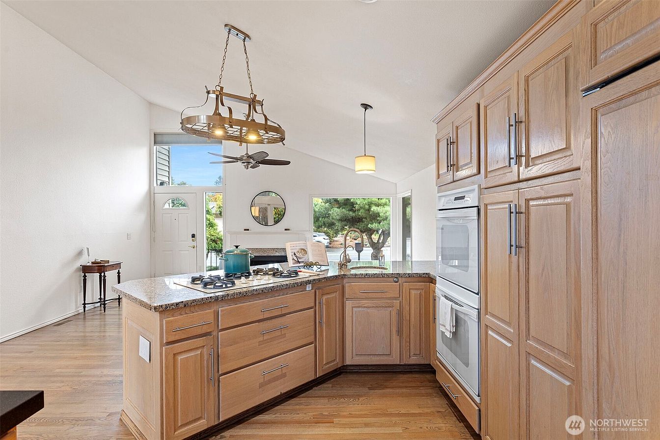 This charming 4-bedroom, 2.5-bathroom home is nestled in the desirable Fairwood community, just moments from Fairwood Golf and Country Club. The bright, open layout features vaulted ceilings and a cozy fireplace, creating an inviting atmosphere. The spacious primary suite includes a versatile nook, perfect for a home office or sitting area. Enjoy updated bathrooms with modern finishes, a well-designed kitchen with plenty of counter space, and upgraded outlet plates with built-in USB for added convenience. Stay comfortable year-round with central A/C. Outside, the large fenced backyard is ideal for play and entertaining. Welcome Home!
