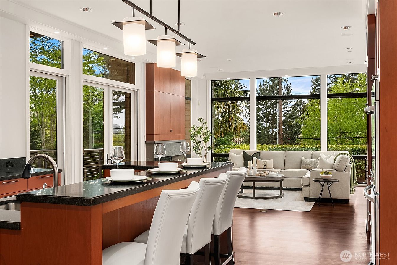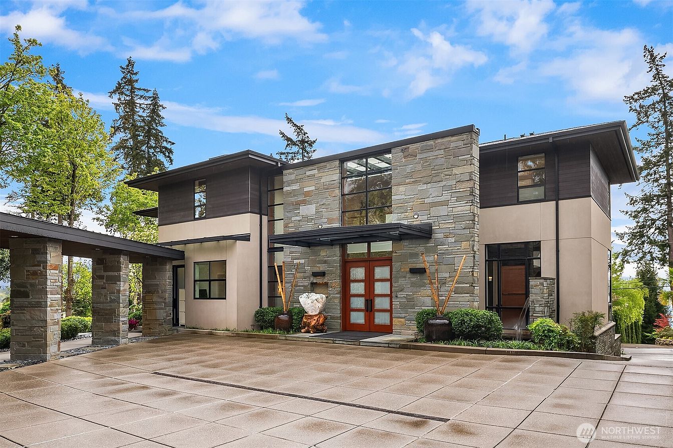Experience unmatched luxury & global sophistication in West Bellevue—an architectural masterpiece by Bender Custom Homes. Nestled on over three-quarters of an acre, this modern estate features clean lines & premium materials such as metal, bluestone, cherry, & mahogany. Towering floor-to-ceiling windows frame stunning western sunsets, while the covered outdoor living area invites year-round enjoyment & entertaining. Thoughtfully designed for comfort & leisure, the property includes a lush private garden, 4 hole putting green & a detached guest house for added flexibility. Located in one of Bellevue’s most coveted neighborhoods, it offers seamless access to world-class dining, shopping, & amenities.