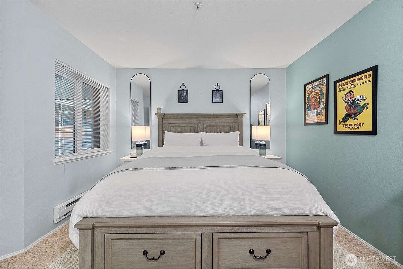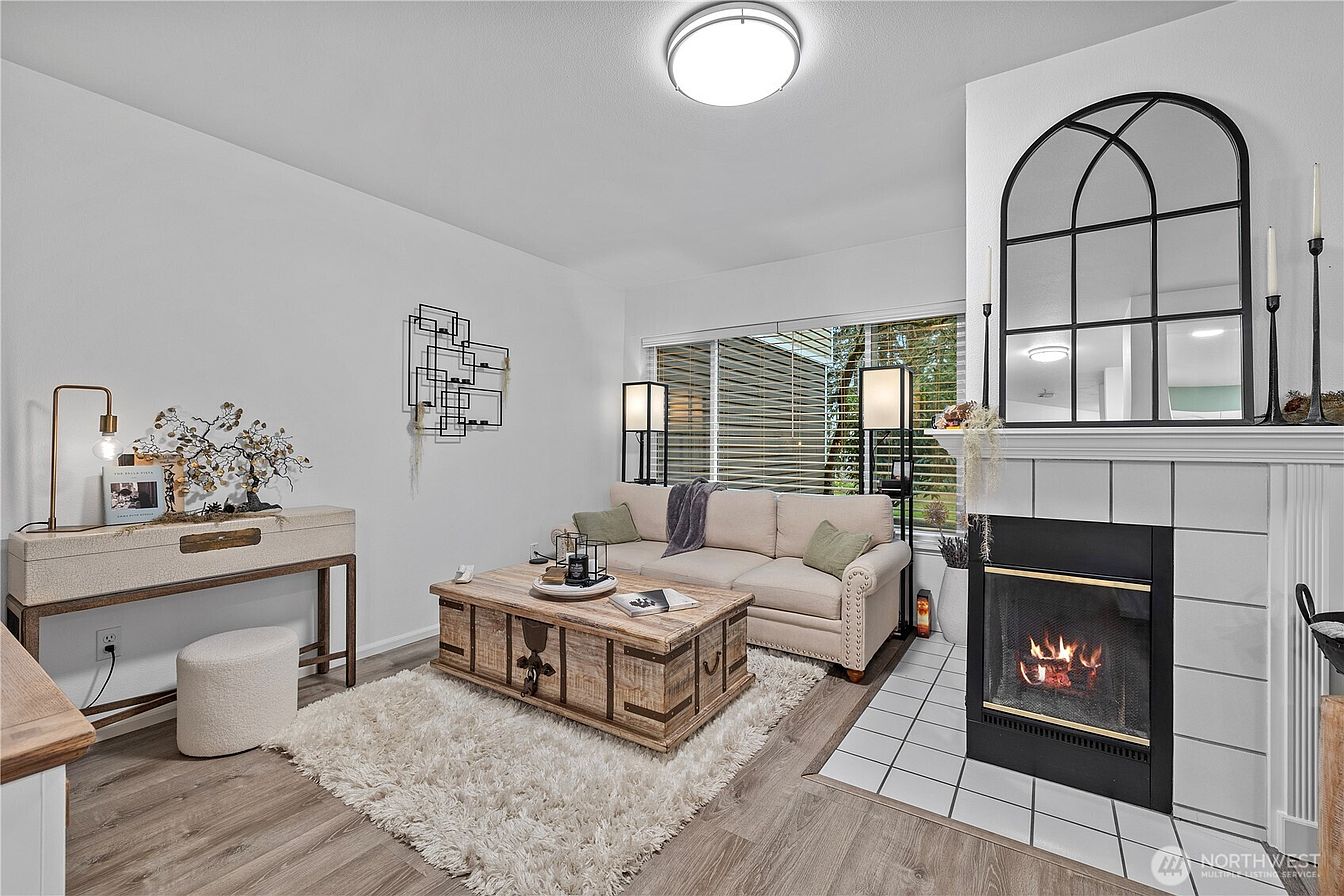 Excellent investment opportunity! No rental cap, and a model tenant. Updated and beautifully positioned along a tranquil greenbelt, this spacious one-bedroom, one-bath home offers serene Lake Sammamish views. Thoughtful renovations shine throughout, including a contemporary kitchen with a welcoming breakfast bar, and A charming corner fireplace warms both the living and dining areas, where you can enjoy glimpses of the lake year-round. Step outside to the private patio, ideal for summer grilling, relaxing with pets, or simply unwinding in the peaceful setting. The generously sized bedroom and bath provide comfort and style, complemented by in-unit laundry, abundant storage, and easy access to I-90 and 405 for stress-free commuting.