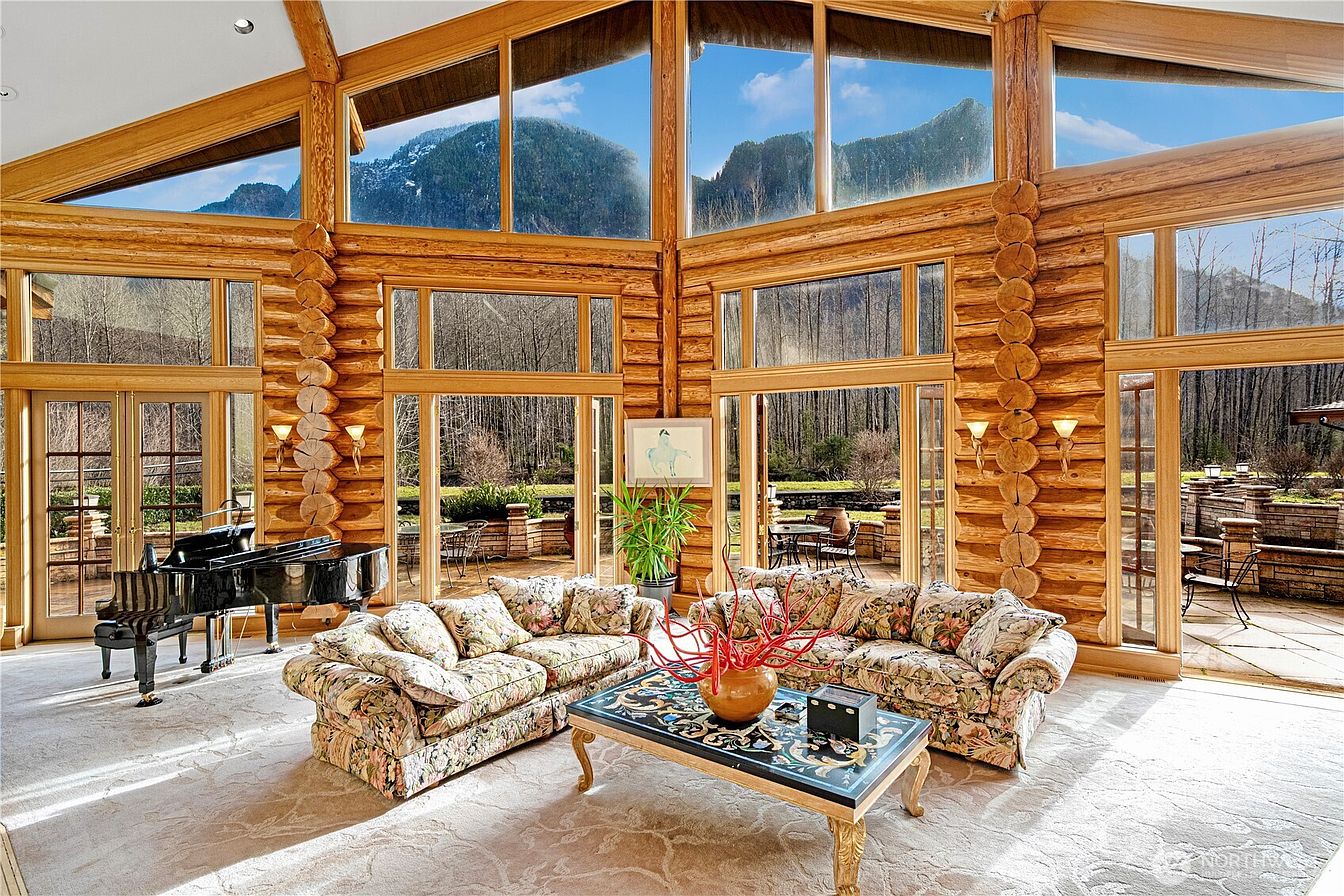 A truly unique, custom-crafted Canadian Red Cedar log home nestled on a breathtaking 36 acres of land with 800 feet of pristine riverfront. Panoramic views can be enjoyed from nearly every room. The grand entry welcomes you into an exceptional interior featuring travertine flooring and soaring ceilings. A generous kitchen offers a large island and plenty of space for gathering. Elegant marble and river-rock fireplaces add character and charm. The primary suite includes an expansive ensuite and a luxurious dressing room. Enjoy year-round swimming in the indoor pool. A gated entrance ensures privacy, making this property ideal as a private multi-home estate, event venue, or retreat destination.