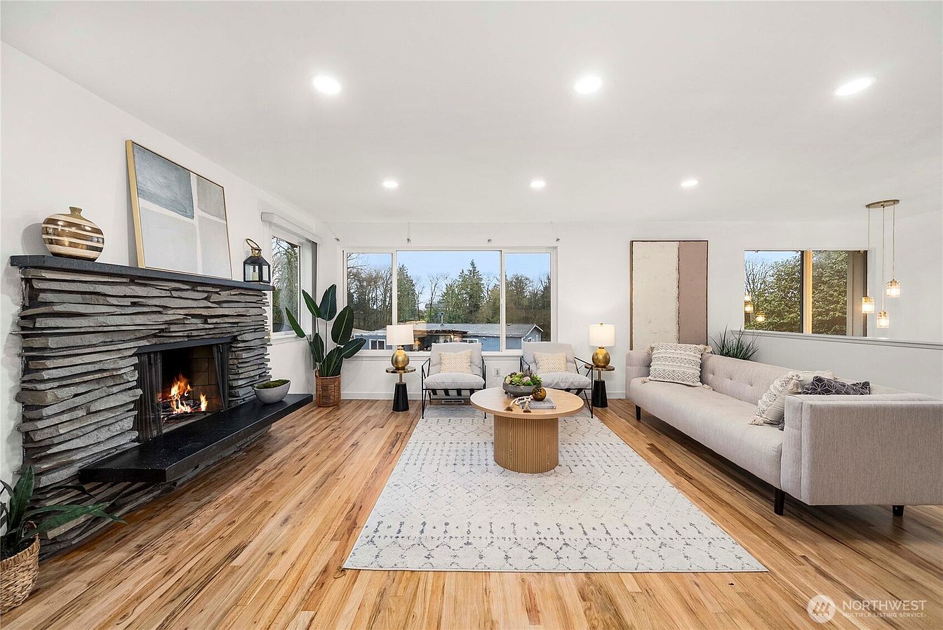Welcome to this newly updated move-in ready home on two adjacent lots, offering a rare opportunity for space, privacy, and future flexibility -with opportunities to expand or possibly redevelop, adding strong long-term investment value. Enjoy an updated kitchen featuring new cabinetry and sleek quartz countertops, refinished hardwood floors, fresh interior paint, and new light fixtures. Additional features include double-pane vinyl windows, a heat pump with A/C, marble shower walls, updated bathrooms with new cabinetry and sinks, a composite deck, a relaxing sauna room, and a two-car garage. The expansive bonus room downstairs offers excellent versatility for a variety of uses. Outside, fruit-bearing persimmon, apple, and pear trees create a charming and functional landscape, allowing you to enjoy fresh, homegrown fruit and a true garden lifestyle. Ideally located with easy access to freeways, Seattle, and the Eastside, and just minutes to Renton & SeaTac airport. Close to shopping, dining, schools, and other everyday amenities. Home is pre-inspected for peace of mind!