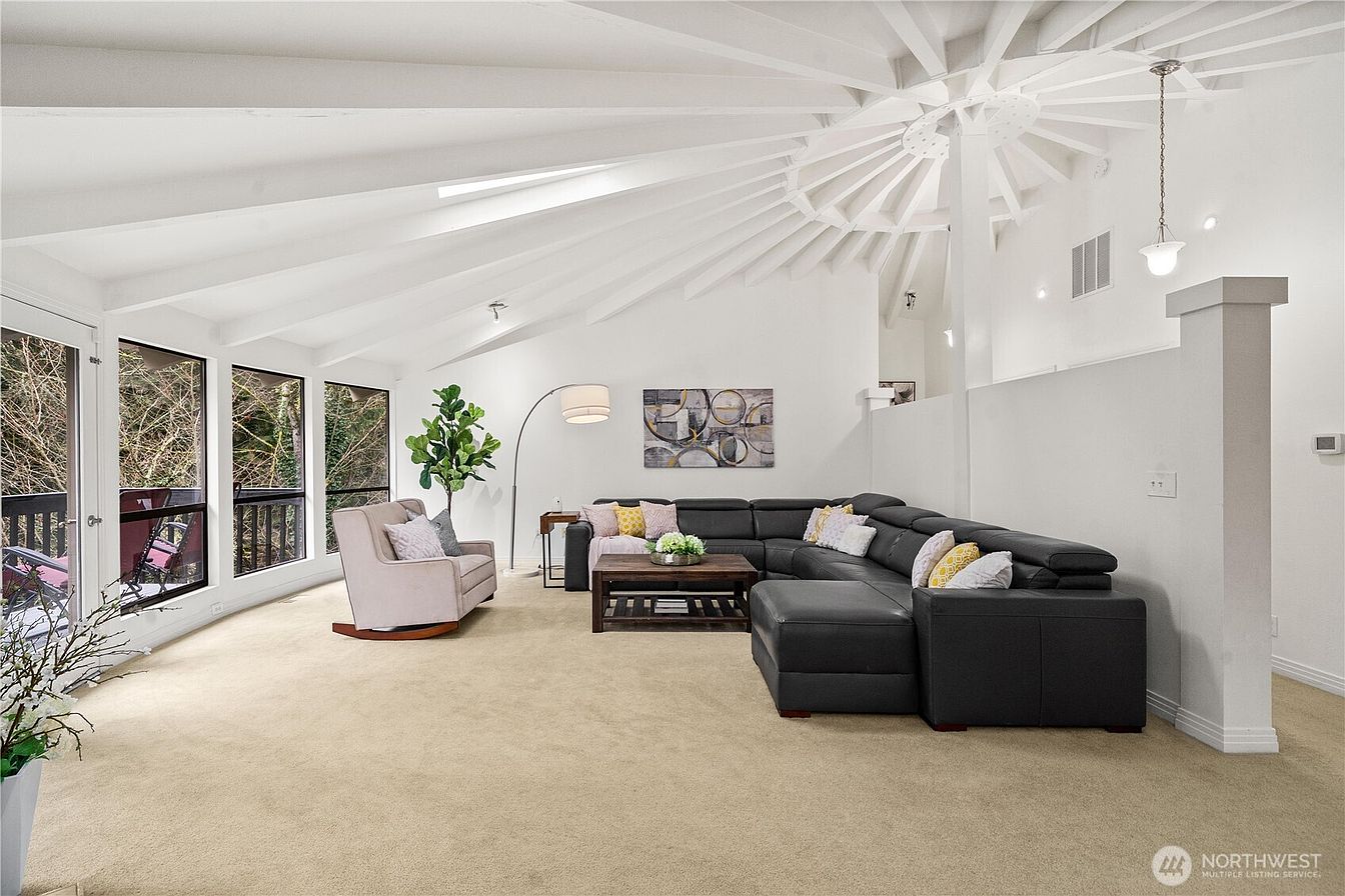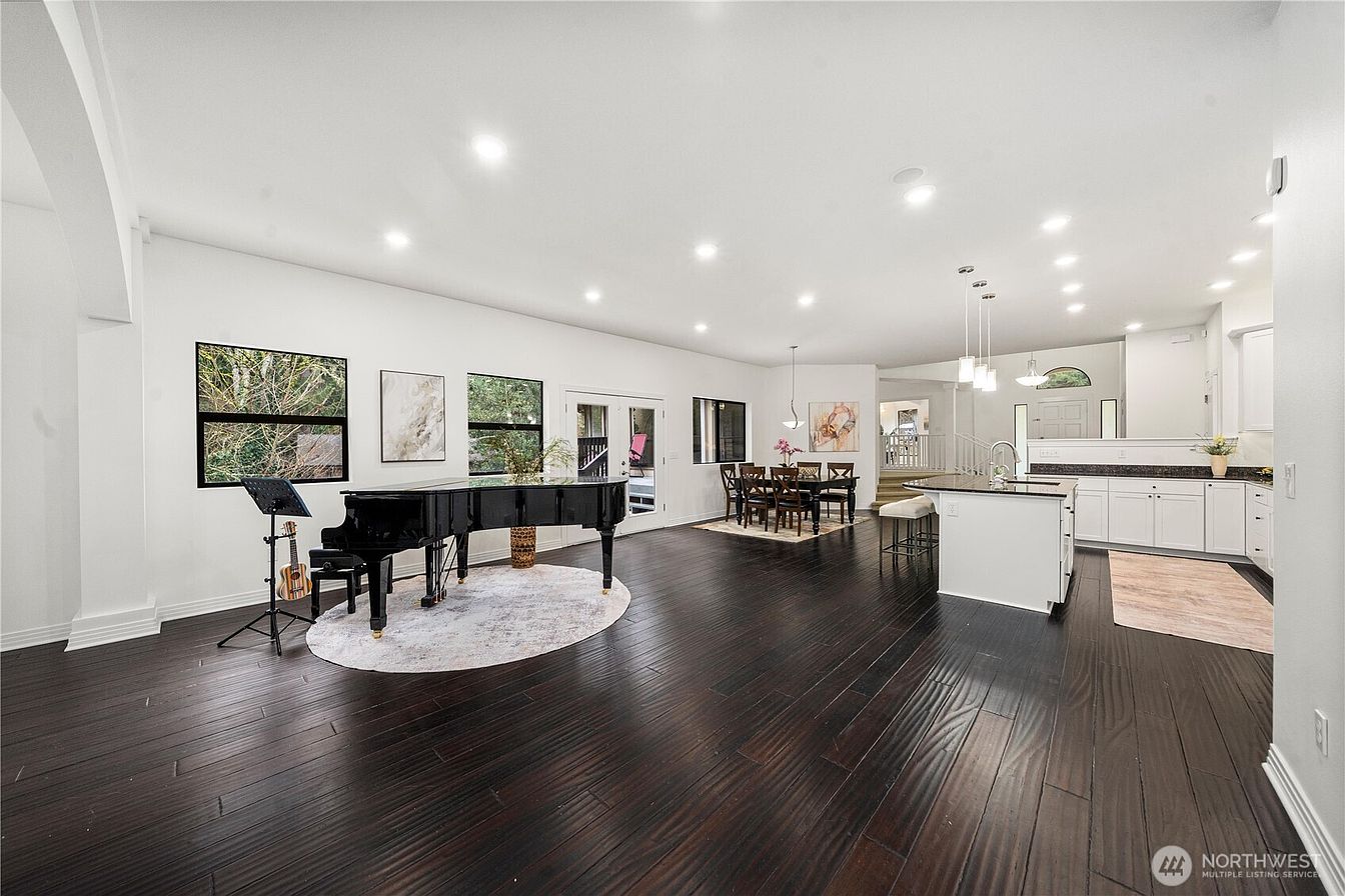 A stunningly remodeled custom estate in prestigious Union Hill Estates, extensively renovated in 2004, offering over 6,000 square feet of refined living. The main residence features 4 bedrooms, thoughtfully designed for both grand entertaining & comfortable everyday living. A rare separate-entry MIL suite functions as a fully independent residence, complete with its own full kitchen, bedroom, & dedicated parking—ideal for multigenerational living, executive housing, or potential income generation. A dramatic vaulted entry with elegant travertine flooring sets the tone for the home’s architectural presence. The main-level living room is crowned by a graceful 14-foot circular ceiling with exposed beams & opens to the deck overlooking a private backyard & serene greenbelt. The gourmet kitchen showcases granite countertops, a statement island, & rich cherry cabinetry, seamlessly flowing into expansive open-concept living areas designed for effortless entertaining. The primary suite offers a walk-in closet & a newly updated spa-inspired five-piece bath. A dedicated office, 2 more bedrooms & updated bathrooms complete the main level. The lower level includes a generous bonus room, a bedroom, and a full bath—perfect for flexible living needs. An oversized three-car garage provides ample space. Excellent Lake Washington School District & just blocks from Bear Creek School. Convenient access to Microsoft, DT Bellevue, Seattle, & everyday amenities. Pre-inspected for buyer confidence.