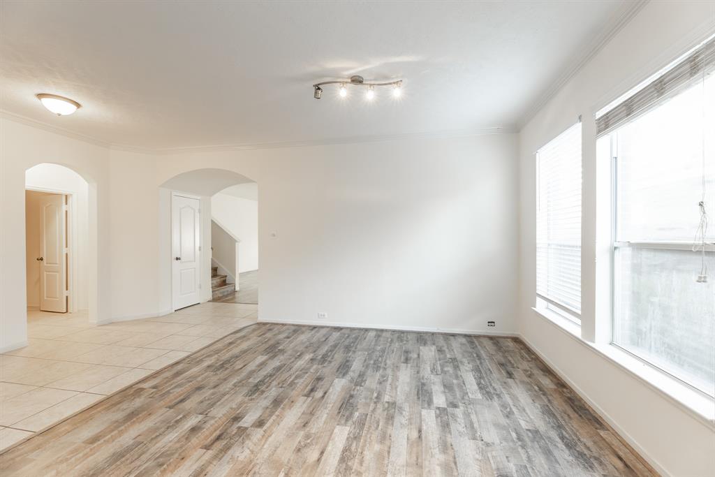 Elegant arches and crown moulding in tiled entry and borht formal areas. Large island in spacious gourmet kitchen. High ceiling in large family room. Private master suite down w/dual sinks, garden tub & large walk-in closet. Large children's retreat, 3 secondary bedroooms, & 2 full baths up. Covered porch.