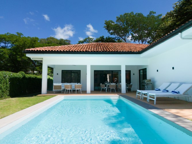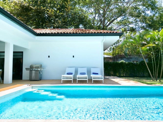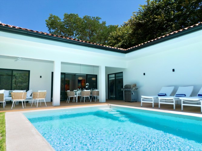 Welcome to Casa Simba: Your Luxurious Tropical Retreat! Discover luxury living in nature in the exclusive gated community of La Norma in Tamarindo, surrounded by lush, mature trees. This exquisite brand-new 3-bedroom, 2.5-bathroom masterpiece offers a generous 2637 sq ft of living space on a 0.1517 acre lot, inviting you to embrace a lifestyle brimming with comfort, nature, and the enchantment of Costa Rica's Pura Vida. Key benefits: European Design: Casa Simba boasts meticulous attention to detail with imported high-end European furniture (including brands like Kettal, Roche Bobois, Ligne Roset), a sleek Italian kitchen equipped with top-of-the-line stainless steel appliances, and bathrooms with Italian design. ?? Vibrant Interiors: The predominantly white interior is artfully accented with colorful touches, including striking artwork and a plush burnt-orange sofa - Togo masterpiece by the renowned French brand Ligne Roset. These elements add a cheerful touch to the living space. ?? Spacious Living: Immerse yourself in 1603 sq ft of thoughtfully designed indoor space, creating a bright and airy ambiance that welcomes you home. ?? Luxurious Bedrooms: The property comprises 3 bedrooms, each adorned with king-size beds and captivating large paintings. The master bedroom boasts a walk-in, dual-sided closet and an en-suite bathroom with double sinks, while two guest bedrooms feature European closets and share a spacious bathroom. ?? Outdoor Paradise: Experience the joys of outdoor living on a 1033 sq ft patio, complete with a large saltwater pool and a lushly landscaped backyard framed by a vibrant green morning glory flower fence. Prime Location: A mere 10-minute stroll will lead you to the famed white sandy beaches of Playa Tamarindo, offering an abundance of activities such as boating, fishing, water sports, charming cafes, exquisite restaurants, lively music scenes, and more! ?? Entertainment Paradise: Relax in style with a Smart TV 65" and a SONOS sound system in the living room. Outdoor Entertaining: The terrace is designed for outdoor gatherings at their finest, featuring an expansive dining table for 8, a spacious sofa, sunbeds, a saltwater pool, and a stainless steel BBQ for unforgettable moments with favourite people. ?? First Class Features: Enjoy the convenience of electric roman blinds on all windows, the luxury of hotel-quality linens and towels, and a vast selection of dishes, glasses, and cutlery for 12. ?? Quality Construction: This residence is solidly built and thoughtfully insulated, featuring beautiful red clay roof tiles and low-maintenance materials such as teak and polyester decking, as well as large aluminum sliding windows. Escape the everyday hustle and bustle and make Casa Simba your sanctuary. Nestled in a tranquil neighborhood, yet just a stone's throw from vibrant Tamarindo with its beautiful beach, this home offers the best of both worlds. Contact us today to arrange a showing. Your slice of paradise awaits!