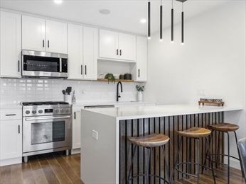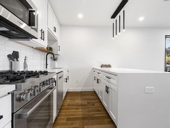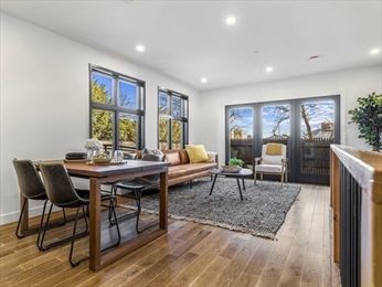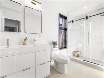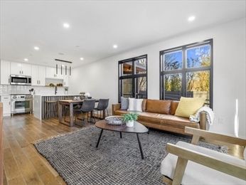 NEW CONSTRUCTION CONDO with a HUGE PRIVATE YARD!! This highly anticipated ground up new construction was built by a renowned local builder. Designed with a contemporary exterior & a modern interior, this eye catching building will not disappoint. This incredible first floor unit offers 3 beds and 3 baths spread across 2 levels of living, while experiencing an open, airy atmosphere complete with soaring ceilings & natural light. The kitchen has Bosch appliances and white shaker cabinets. The first level has 2 bedrooms and 2 bathrooms. There's direct access to the huge private yard from the living room and owners suite. The lower level is serves as an additional living area with a bedroom, bathroom and wet bar - great for overnight guests! In-unit laundry, and 2 off street parking spots round off this offering. Access to Tufts University, Chevalier Theater, Medford Center, 1/2 mile to Green Line, and countless local shops & trendy eateries.