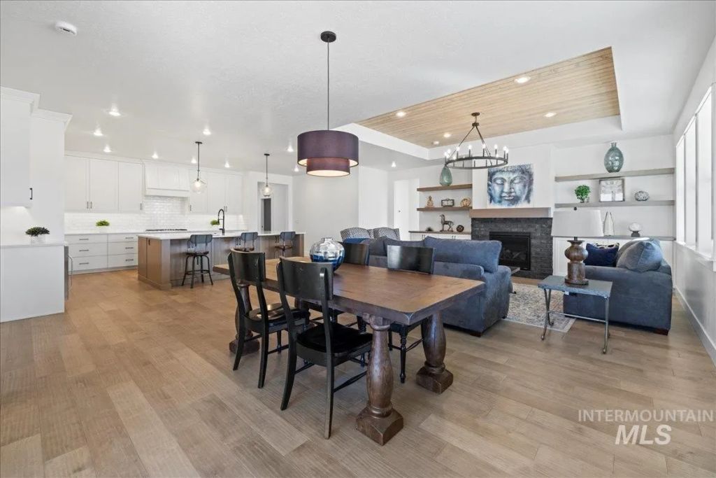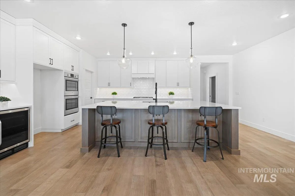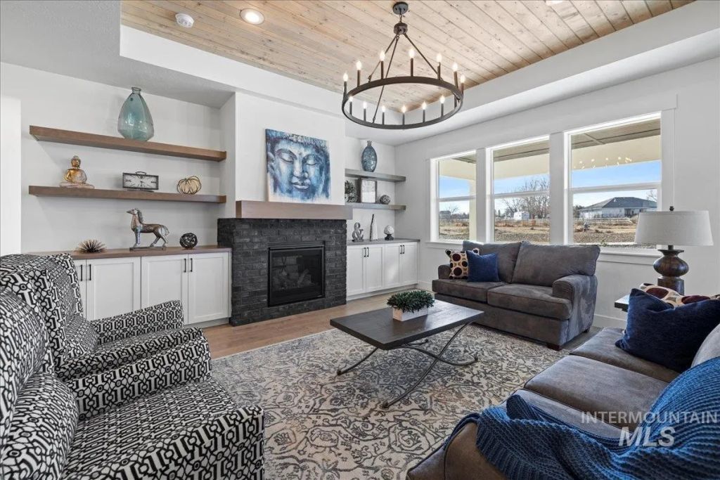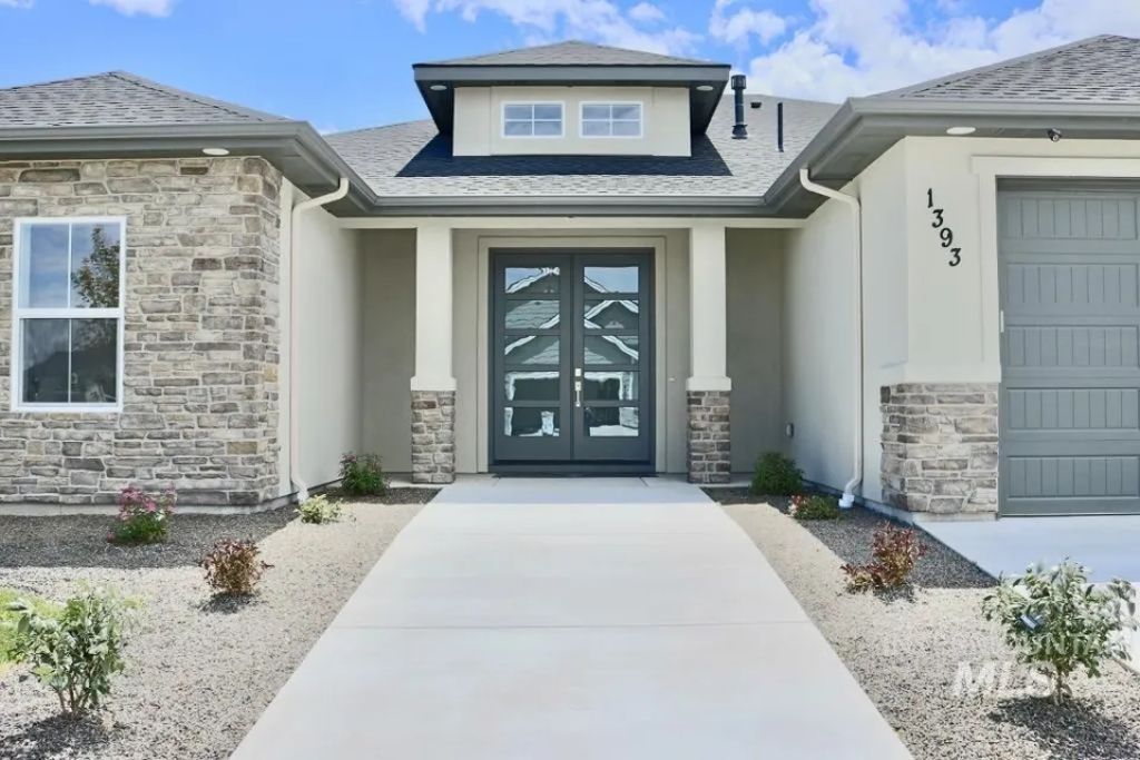 Introducing THE KYLE by Brookstone Custom Homes, boasting a 43' RV Bay. This award-winning design encompasses an owner's suite, 2 additional bedrooms, and a separate den. Step through its grand double doors into an inviting space adorned with a soaring 15 ceiling. The open floor plan features 9 ceilings throughout, accentuated by 10 trey ceilings in the great room, complemented by a gas fireplace surrounded by built-ins. The kitchen is a focal point, boasting a remarkable 10 wide island, built-in appliances, custom cabinetry, a walk-in pantry, and more. Outside, a 41 covered back patio provides an ideal setting for entertaining, offering views of the stunning Owyhee Mountain Ranges. Situated in PHASE 7 of the sought-after Brittania Heights community.