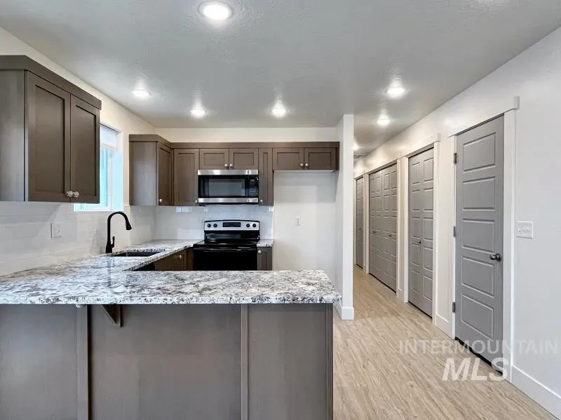Welcome to this modern, newly constructed duplex (2024) located in the charming city of Wilder, Idaho. This single-level property offers a unique opportunity for comfortable living or investment property. Both units boast open concept design in the kitchen, dining and living room which includes LVP flooring, tile backsplash, breakfast bar, and stainless steel appliances: range/oven, dishwasher, microwave, and refrigerator. Owner suites' include dual vanities and walk-in closets. Zero maintenance landscaping. A convenient 1-car attached garage for both units. Common area, zero maintenance landscaping and minutes to Hwy 19/Simplot Blvd with easy freeway access.