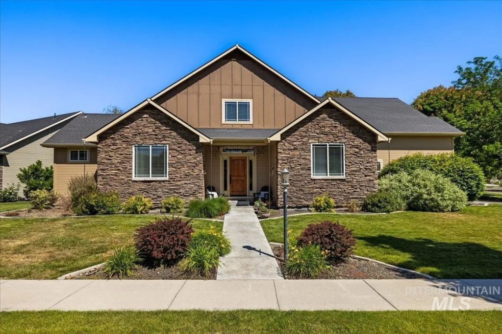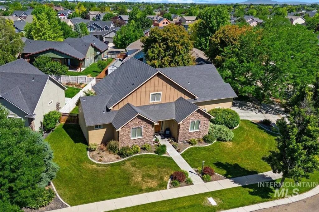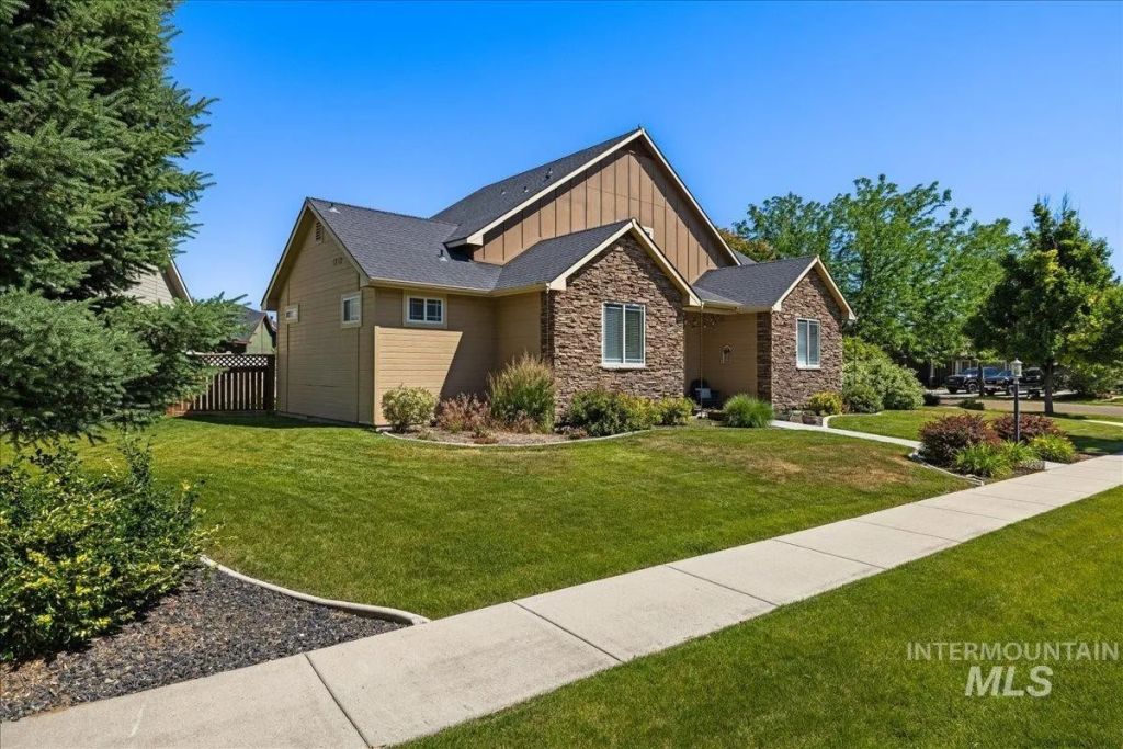 Prime placement w/in the esteemed Fall River Estates. Situated on a corner lot that embodies the charm of tree-lined streets, walking paths & quick access to schools, shopping, RedHawk Golf Course & Lake Lowell. Discover ample living space throughout this generous open design crowned w/tasteful touches such as tile entryway, true hardwood floors, extensive crown molding, & floor-to-ceiling stone fireplace w/custom mantel. Kitchen presents granite-tile counters, knotty alder cabinets, stainless steel appliances, & step-up island/breakfast bar. Main level boasts versatile 4th bed or office, including luxurious owners suite complete w/dual vanities, jetted tub, walk-in tile shower w/dual heads & custom walk-in closet. Upstairs, split landings leading to a large bonus room w/wet bar, a loft space, 2 spacious bedrooms & full bath. Fantastic side-entry 3-car garage w/ample storage, dual-zoned HVAC system, PLUS CHOOSE your colors! Sellers will fully paint exterior of home before closing w/full-price offer.