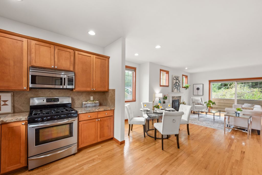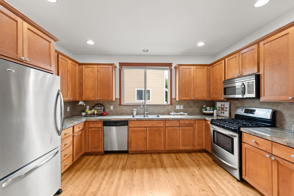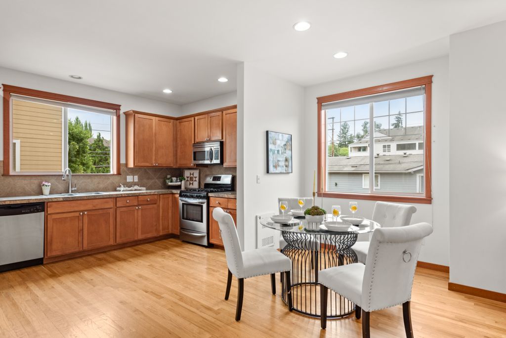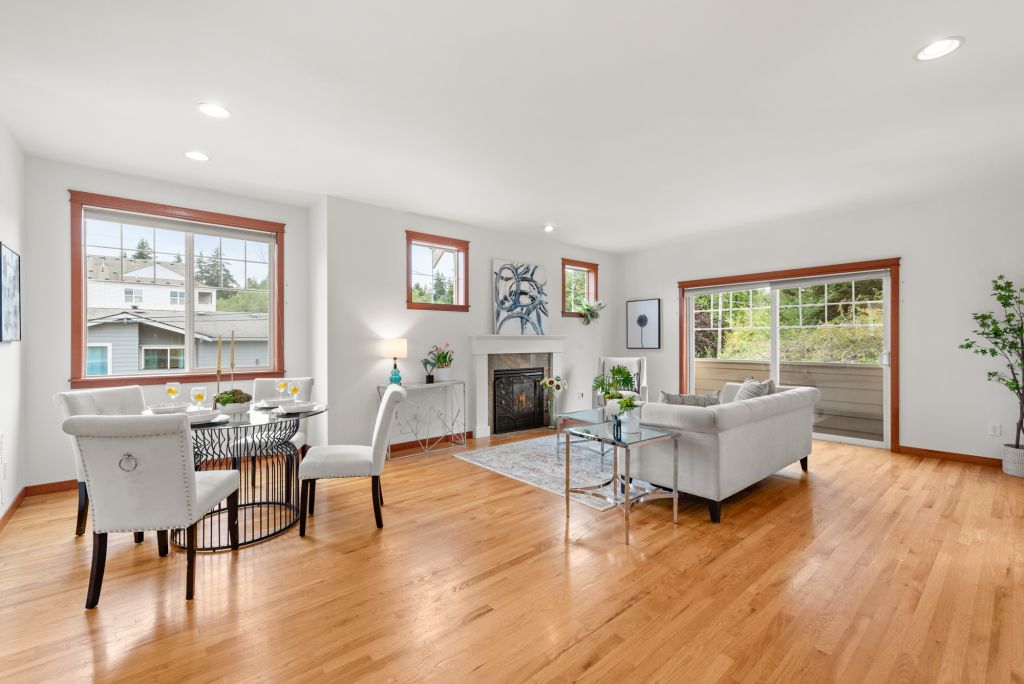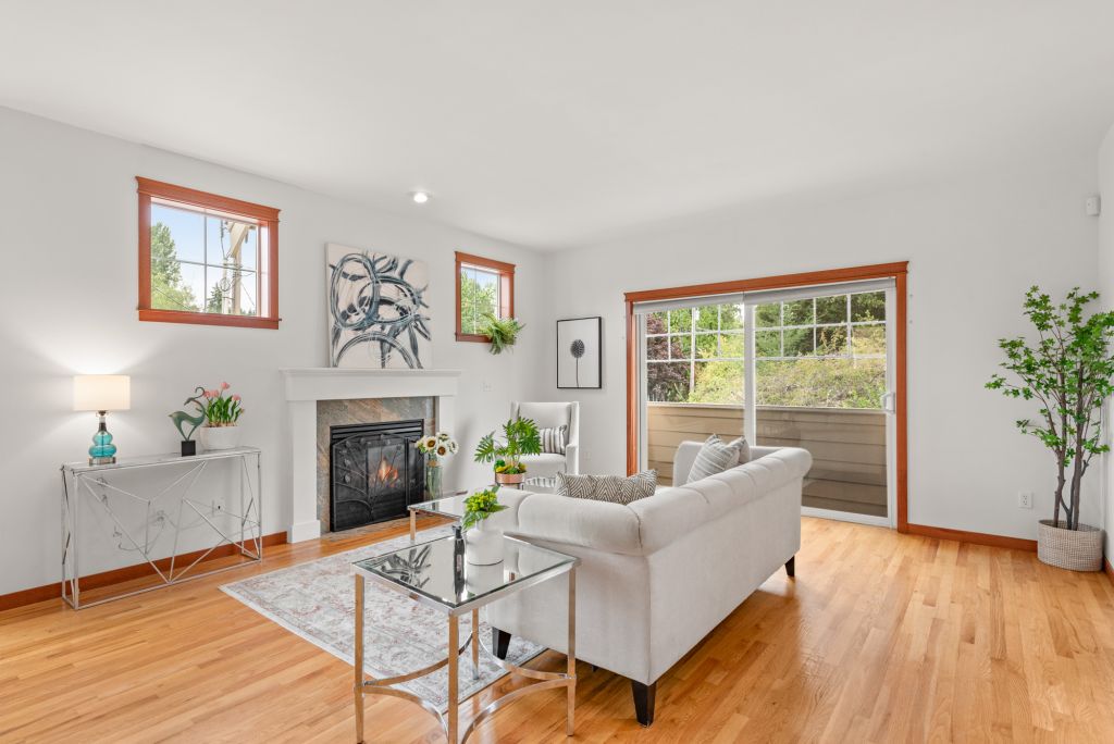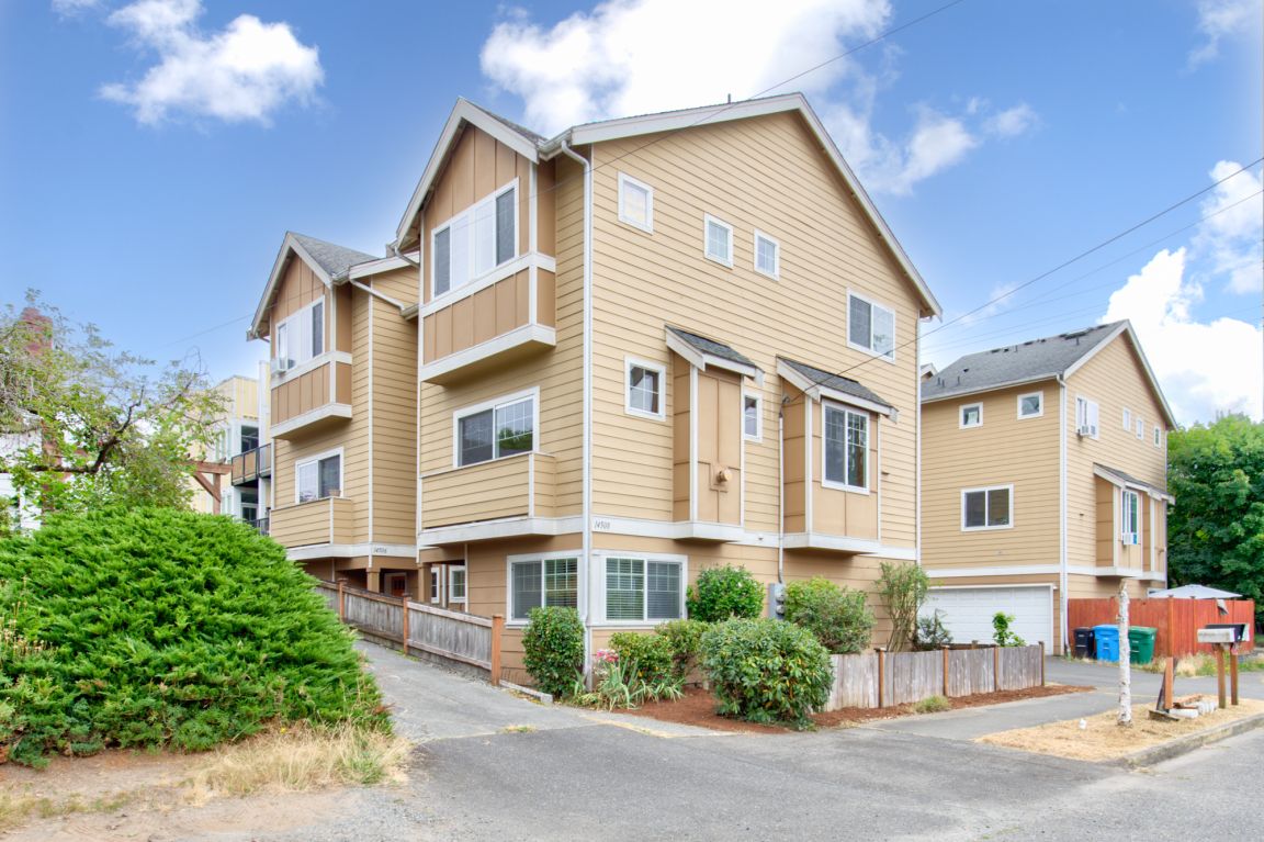 Discover this beautiful townhome featuring a 2-car garage and an expansive floorplan. The freshly painted interior welcomes you into an entry level that offers a cozy bedroom and a convenient half bath. Ascend to a bright, open living space with a fireplace, dining area, and an open concept kitchen adorned with beautiful hardwood floors. The top floor impresses with vaulted ceilings, another bedroom and a full bath, and a luxurious primary suite with an en suite bathroom featuring double sinks. Perfectly located near shopping centers, cafes, Jackson Park Golf Course, parks, and trails. Quick access to HWY 522, I-5, and the new light rail station. No HOA!