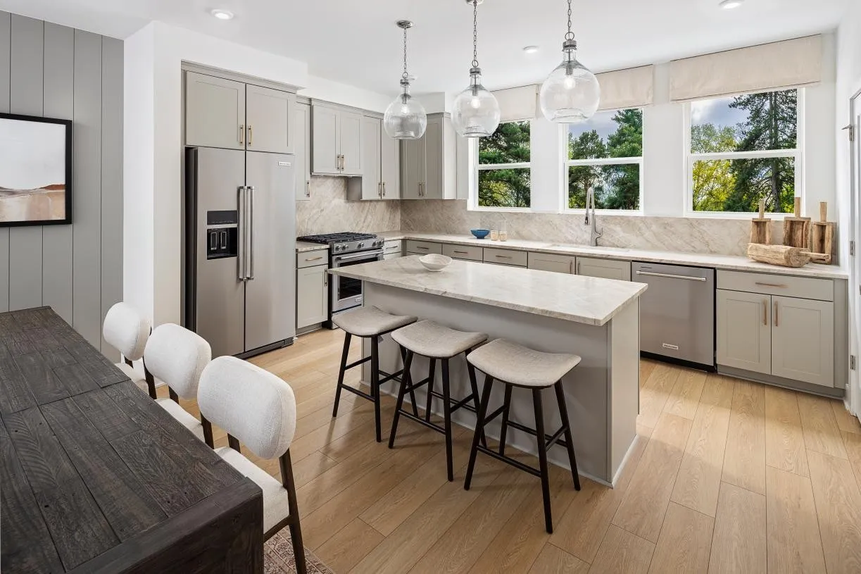 From the Ansley's spacious main living level and bright great room to its bedrooms and fourth-floor indoor/outdoor living space, this home welcomes you. A well-designed kitchen overlooks the generous casual dining area, and is complete with a large center island with breakfast bar, plenty of counter and cabinet space, and sizable pantry. The primary bedroom suite is enhanced by an ample walk-in closet and spa-like primary bath with large luxe shower. The secondary bedroom features a roomy closet and private bath. Secluded on the fourth floor, a bedroom with closet and private bath overlooks a generous loft with terrace. Additional highlights include a convenient second floor powder room, centrally located third floor laundry, and additional storage throughout.