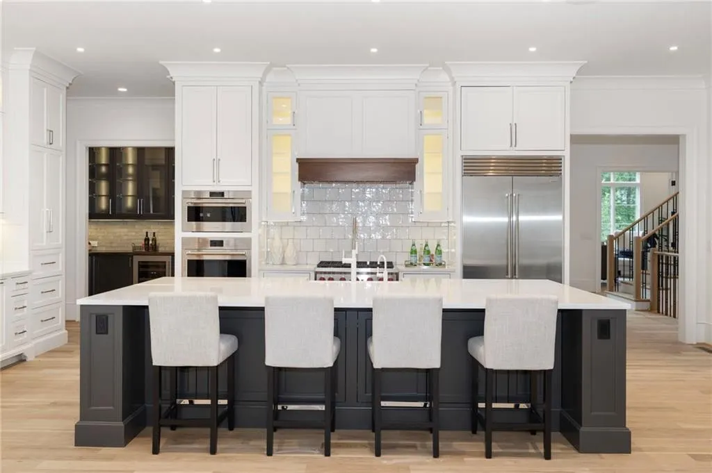 Introducing a stunning new luxury home, meticulously crafted with classic design elegance and modern finishes. Nestled just minutes away from regionally ranked hospitals, dining, and premier retail, this exceptional property offers an unparalleled lifestyle. Boasting a distinguished 4 sides brick exterior, the residence showcases a vaulted and open main living area, spacious primary on main, 4 fireplaces and a generous 4 car garage on a sprawling 7/10-acre lot. Across its 3 finished levels, each adorned with 10-foot ceilings, discover a total of 6 bedrooms, 6 full baths, and 2 half baths. Approaching the front, gas lanterns warmly greet visitors while inside, the main and upper levels showcase exquisite wood floors throughout all 3 levels. The heart of the home resides on the main level with a chef's dream gourmet kitchen, equipped with 42 Sub-Zero refrigerator and Wolf appliances, pair of dishwashers, abundance of counter space, separate prep sink, and elegant Quartzite counters. Entertaining is effortless in the vaulted living room, complete with floating shelves, cabinetry, gas log fireplace and sliding doors that expand your living space outdoors. The main level living area expands to a vaulted Loggia with gas log fireplace and grilling station, leading to an expansive open-air deck, ideal for alfresco dining and relaxation. The primary suite on the main level is highlighted by a vaulted and beamed ceiling, an electric fireplace and direct access to the rear deck oasis. The primary bath is adorned with Brizo polished nickel fixtures, marble counters, soaking tub, and a luxurious marble steam shower. Practical amenities abound, including 2 laundry rooms and a spacious terrace level boasting a kitchenette, an entertaining island with a wine cooler, ice maker, microwave, and nearby wine locker with WhisperKool climate control for an optimal wine temperature. Tucked away is a spacious and light filled bedroom with an en-suite bath offering privacy and convenience near plenty of attached living spaces with access to a covered patio featuring a gas starter, wood-burning fireplace. Additional features enhance comfort and convenience, such as a Generac whole house generator, two Navien tankless water heaters, and comprehensive irrigation in the front and rear yards. Complementing the home are distinctive fireplaces with Jack arches, cedar beams both inside and out along with Cedar window and door headers add a touch of rustic charm. The expansive fenced backyard offers ample space, perfectly suited for future customization including the potential for a pool. This remarkable home represents the pinnacle of luxury living, combining timeless design with state-of-the-art amenities, all within close proximity to essential amenities and attractions. Experience unparalleled elegance and sophistication in every detail of this exceptional luxury home.