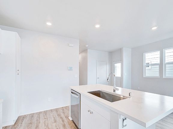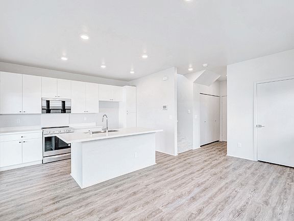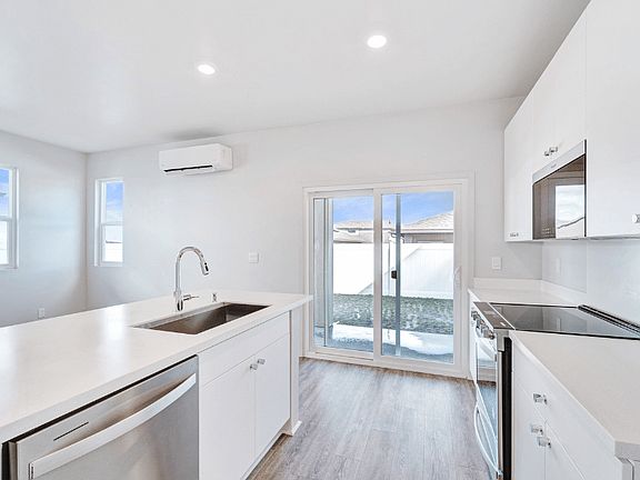 The 'Alohi, or Bright plan, is an open design that offers 3 bedrooms, a family room, 2.5 baths, and a total of 1,220 sq. ft. (net) interior living space. Walk in the front door of this home, and you will picture memories being made here. The open living room flows seamlessly through the kitchen and out to the covered lanai. The modern-style kitchen with white cabinets provides ample storage space, soft-close doors, and drawers, and features a Kohler single-basin vault sink, as well as a Whirlpool® stainless steel appliance package which includes your range/oven, micro-hood, and dishwasher. Downstairs, you'll also find a powder room, laundry room, bulk storage/safe room, and additional under stairs storage. Upstairs, discover the vaulted ceiling family room that includes a storage closet, and a drop zone tech area equipped with USB-C outlets. Next door, the primary bedroom includes a large walk-in and bonus closet and an ensuite bathroom with dual sinks and a step-in shower. Enjoy features such as split ACs in the living area and bedrooms, vinyl plank flooring in the living and kitchen areas, and plush carpeting in the bedrooms. The 2-car attached garage has a utility sink, an automatic garage door opener, and is PV and EV ready. A 10-year Limited Structural Warranty, Urban Ho'opili Garden with automatic irrigation, and a Home is Connected® smart home system, are included in this home as well.
