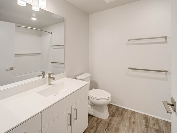 This single level 2 bedroom, 2 bath condominium with 1,069 square feet allows for comfortable living. The concrete masonry block wall at the entry adds a chic urban vibe. This floor plan offers an open concept living room and kitchen with eat-at counter. From the living room, step out to the covered lanai to relax and take in the fresh air. The main bedroom has a walk-in closet and en suite bathroom with a double vanity and shower. This corner unit provides for additional windows and sunlight. The second bedroom has a generously sized closet with mirrored wardrobe doors and the second bathroom features a full-size bathtub. A unique feature of this plan type is the drop zone. Air Conditioning and modern appliances including a range/oven, micro-hood, dishwasher, refrigerator, and washer/dryer allow for ease of living.