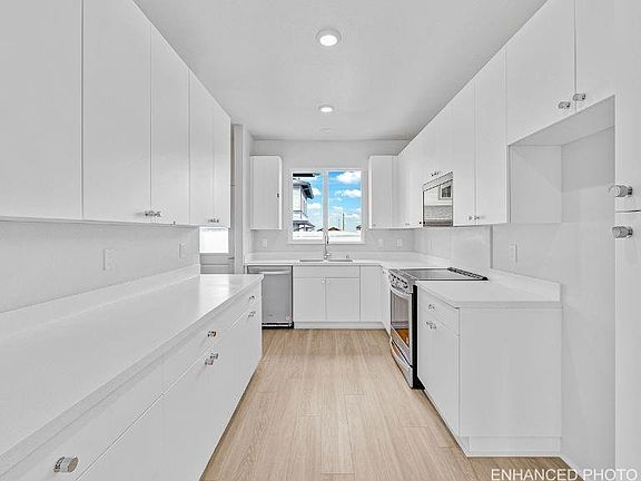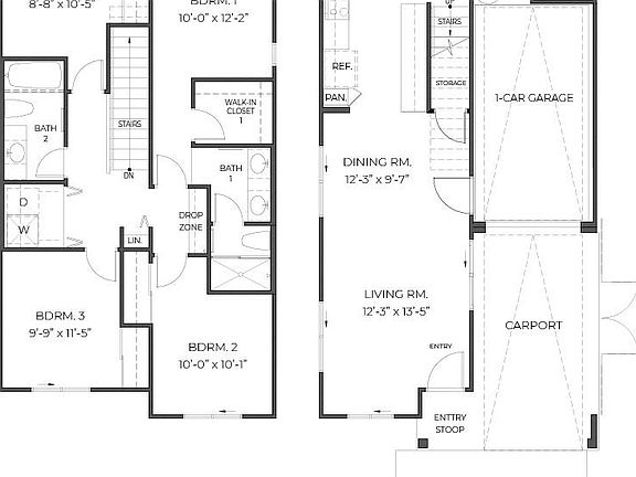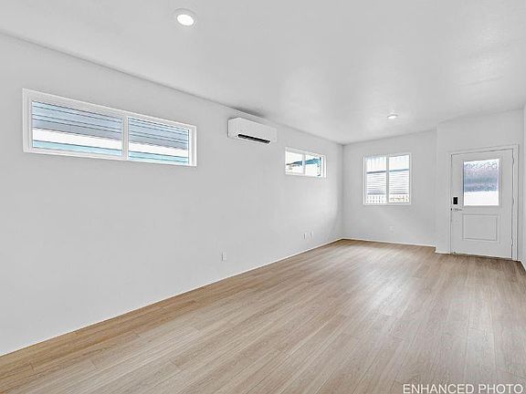 The ‘Moon' or Mahina plan. The first floor living area is a spacious design that includes the living room, dining room, kitchen, powder room, bulk storage/safe room, and additional under stairs storage. The modern-style kitchen with white cabinets provides ample storage space, soft-close doors, and drawers, and features a Kohler single-basin vault sink, as well as a Whirlpool® SS appliance package. The spacious second floor primary suite has a walk-in closet and bath with dual sinks and a step-in shower. The secondary bedrooms are light and have mirrored wardrobes. For your convenience, the hallway includes solar tube lighting, the drop zone tech area with USB-C outlets and cabinets, and an enclosed laundry space with washer and dryer hookups. Enjoy features such as split ACs in the living area and bedrooms, vinyl plank flooring in the living and kitchen areas, and plush carpeting in the bedrooms. The 1-car attached garage with a 1-car tandem covered carport, has a utility sink, automatic garage door opener, and is PV and EV ready. A 10-year Limited Structural Warranty, Urban Garden with automatic irrigation, and a Home is Connected® smart home system is also included in this home.