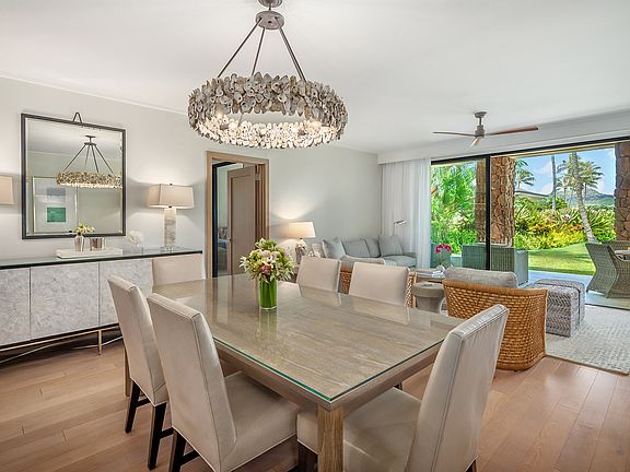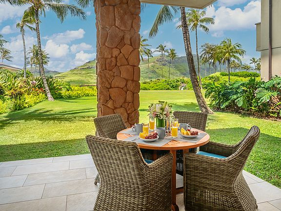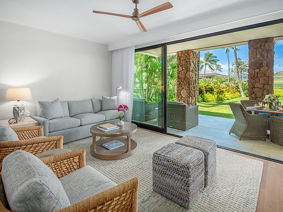 Maliula 2101 at Timbers Kaua'i is a gorgeous 3 bedroom/3.5 bath luxury condominium with an open floorplan and fabulous mountain and lagoon views. The location of this home offers privacy and serenity with a desirable end location and a lush lawn and mature landscaping. Inside you'll find an exceptional level of finish with white oak hardwood flooring, a beautifully appointed chef's kitchen featuring Thermador and Bosch appliances, custom cabinetry and natural stone countertops and vanities throughout. The home features three spacious lanais creating idyllic indoor/outdoor living. The residence is beautifully furnished and offered turn-key. The Maliula Residences at Timbers Kauai offer elegant and sophisticated oceanfront resort-style living at the beautiful Timbers Kaua'i Ocean Club & Residences at the Hokuala resort. Resort amenities include a state-of-the-art fitness facility, wellness retreat, multiple pools and hot tubs, Hualani's Restaurant, and an island adventure center stocked with bikes, boards, beach equipment and gear for any island adventure. Owners enjoy a turn-key residence and effortless ownership with dedicated concierge services, onsite housekeeping and maintenance services, wellness programs and an activities calendar chock full of activities to fit any lifestyle. Timbers Kauai Ocean Club & Residences is nestled on the ocean's edge between the 15th and 16th holes of the award-winning Signature Nicklaus Designed Ocean Course at Hokuala. At Hokuala, Owners enjoy access to a 450-acre estate with endless biking and running trails meandering throughout lush tropical grounds, an Organic Farm, and a 38-acres of lagoon with fishing, kayaking and paddle boarding available. The resort is conveniently located adjacent to beaches with dining and shopping nearby.