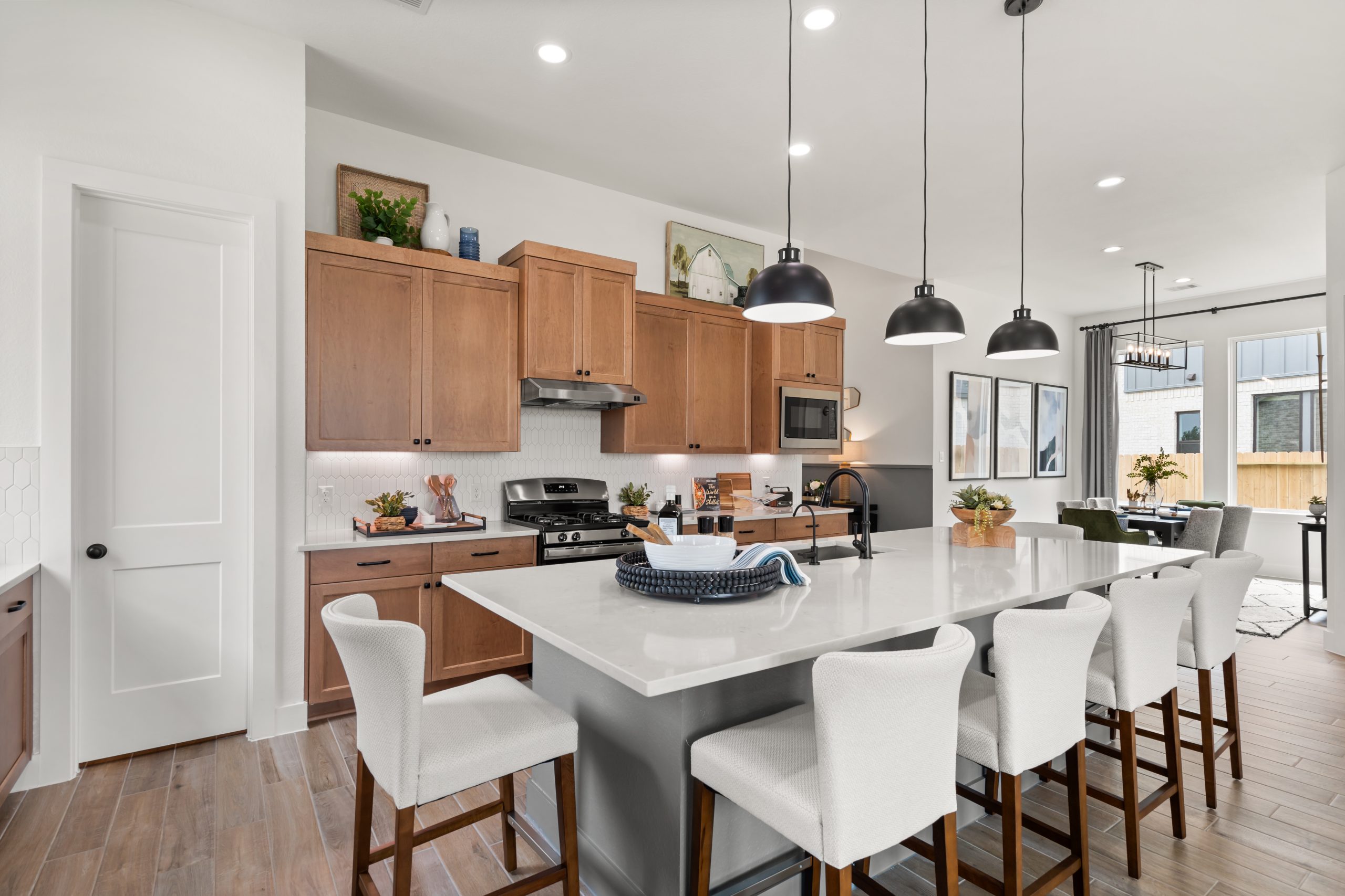 Extended foyer leads to open casual dining, family room, and island kitchen with additional countertop dining. Bedroom 3 can serve as 2nd master. Study is convenient to common area and master suite. Master bedroom located at the back of the home for privacy.