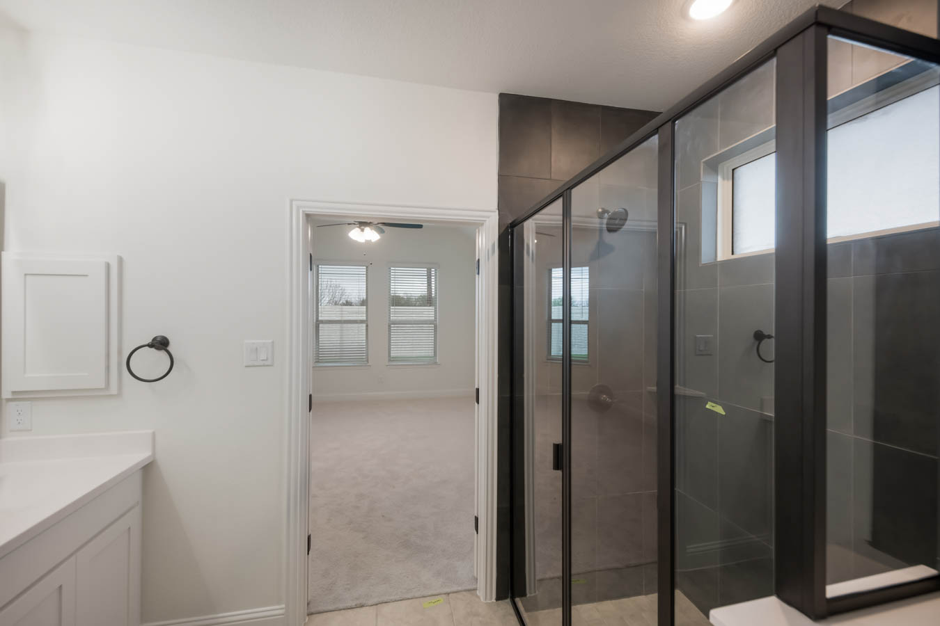 The master bedroom has a spacious walk-in closet and a beautiful primary bath. The primary bath has dual vanities, a drop-in tub, and a mud set shower. Both secondary bedrooms feature walk-in closets.