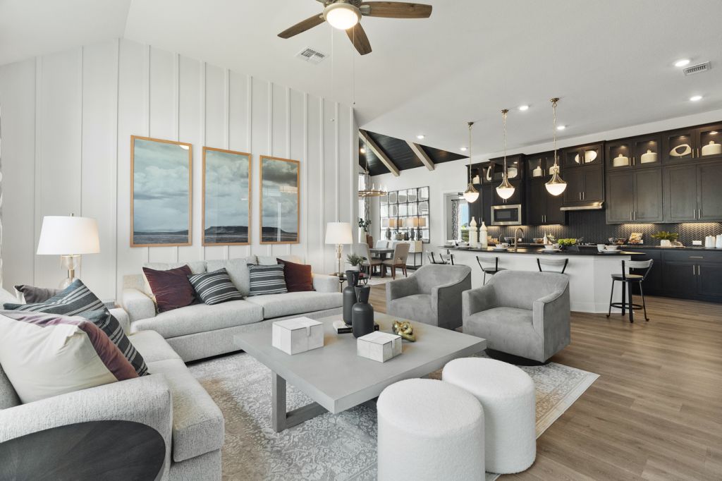 Welcome to the Colby! This perfect one-story home offers ample space with four bedrooms, with the option for a fifth bedroom or a study. The floor plan includes a spacious kitchen with an oversized center island, seamlessly opening to the family room and dining room. The dining room features a stunning vaulted ceiling that extends to the covered outdoor living area. A unique feature of this home is the kids' den off the dining area, connecting two bedrooms and including a full bath. The primary bedroom boasts beautiful tray ceilings and a large ensuite bathroom with dual sinks, a private toilet room, and an oversized closet. Make The Colby your next home in Blackhawk!