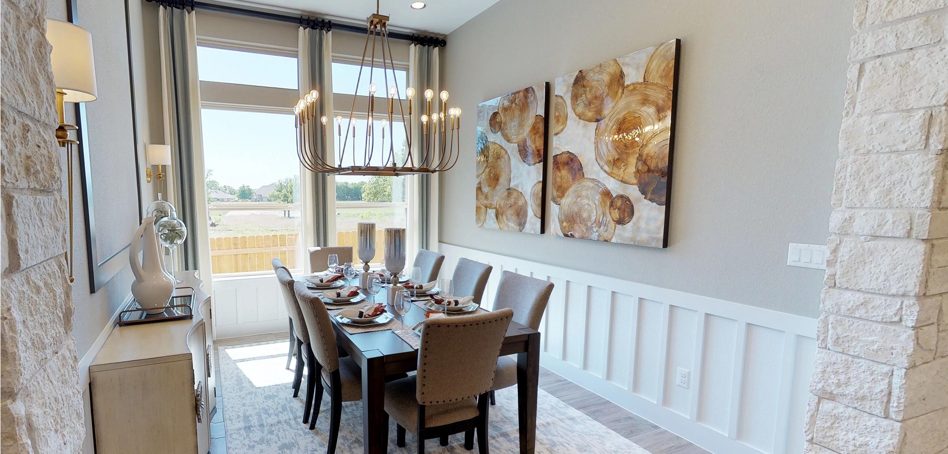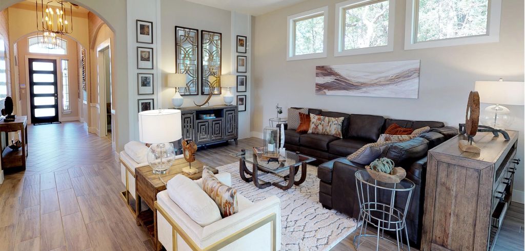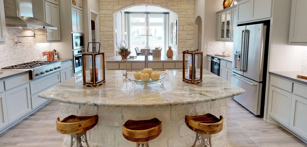 This one-story, 4 bedroom 3.5 bath home offers a 13' tray ceiling entry leading to a breathtaking family room & kitchen that boasts 2 large islands for seating & entertaining; counter space for plenty of decorating and enough cabinet space for all your cooking items & more! The dining room sits off of the kitchen area and a study is also included. The attractive master suite has an 11' tray ceiling and in the bathroom, you'll enjoy a free-standing soaker tub, separate large shower with a bench, granite countertops, and dual oversized closet. With spacious windows including transoms in your family room, you can see out onto your covered patio where you will enjoy sitting in front of your included outdoor fireplace on those chilly nights.