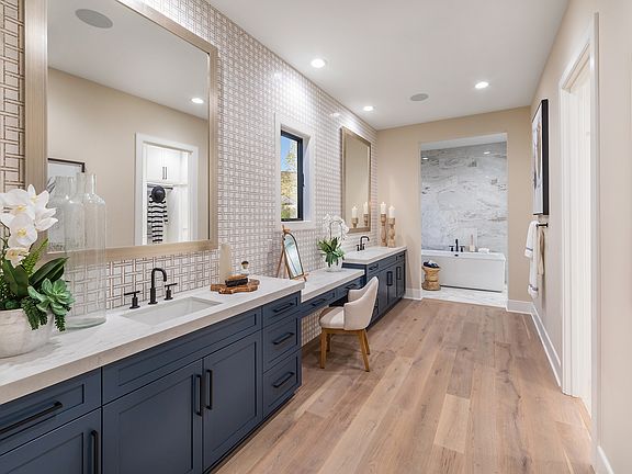 The Oak Residence (4701 sq. ft.) is a home with 4 bedrooms, 3.5 bathrooms and 4-car garage. Features include great room with covered loggia, dining room, living room and walk-in closets.
