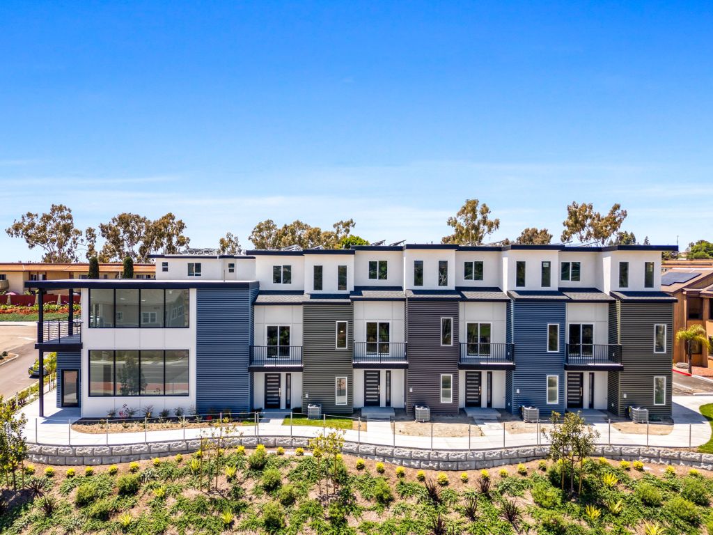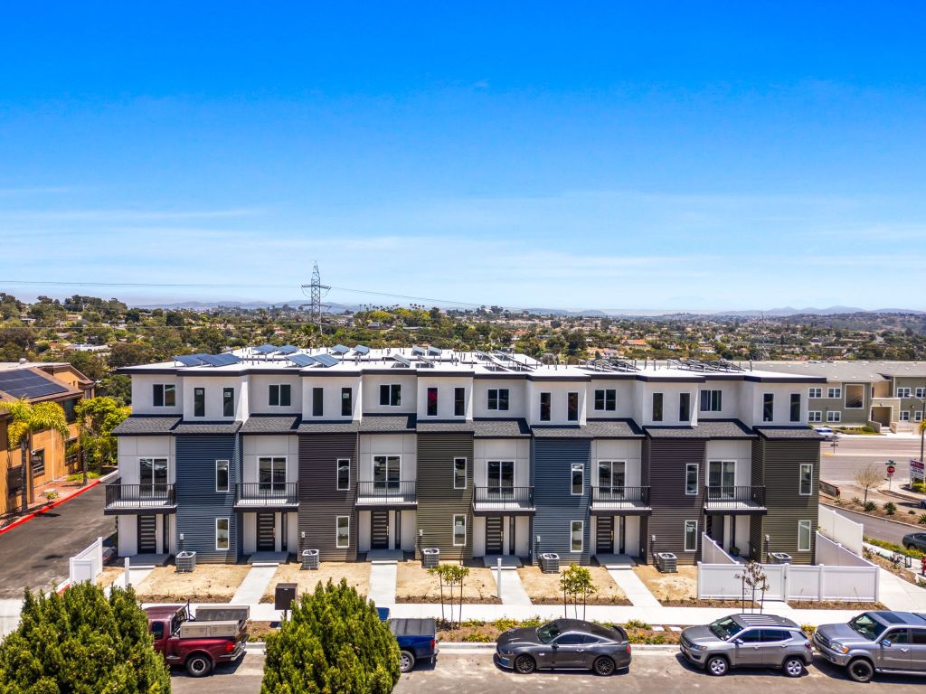 The Townhomes at ON GENEVA, Priced $675,000-$725,000! Brand New Construction, Ready to Move-in, by Tesoro Builders. This quaint community boasts 10 (7 available) NEWLY BUILT TOWNHOMES in the popular FIRE MOUNTAIN area of OCEANSIDE, CA. Complete with Cutting-Edge MODERN architecture, and Thoughtful INTERIOR DESIGN, which includes CUSTOM FIXTURES & DESIGNER PAINT. The OPEN CONCEPT living space consists of the LIVING ROOM, DINING space, KITCHEN w/QUARTZ COUNTERS, and BAR SEATING. The Kitchen is equipped with STAINLESS STEEL APPLIANCES including a GE Electric Range, GE over-range MICROWAVE, and GE ENERGY-STAR DISHWASHER (Optional appliance package includes a GE ENERGY-STAR Fridge, Washer & Dryer). OTHER FEATURES: SOLAR PANELS (owned & included in Price), 2-CAR FINISHED GARAGE with E-CAR CHARGING OUTLET and STORAGE area. DOUBLE PANE Windows and BALCONY Slider. Enclosed LAUNDRY AREA on the upper level, FIRE SPRINKLER System, Ground Floor FOYER Entry, from the front door or the ATTACHED GARAGE. ON GENEVA is perfectly located, with easy access to PUBLIC TRANSPORTATION, HIGHWAYS, and just a 10-15-minute drive to THE BEACH, CARLSBAD VILLAGE, and DOWNTOWN OCEANSIDE. NOTE: The Interior Photos & 3D Tour are of the MODEL UNIT (which has an extra sq ft.(posted) & bathroom on the 1st level, not shown in media here). *ALL OTHER UNITS are 1,278 sq ft. 2 bed/2 baths with the same LAYOUT, and DESIGN, shown in the media provided. *UNIT LOCATION within the community, YARD SPACE, VIEWS, and some FINISHES including FLOORING will vary and are priced accordingly. *Inquire about remaining ready-to-move-in units. *Primary Suite & extra 1/2 bath optional upgrade is also available.