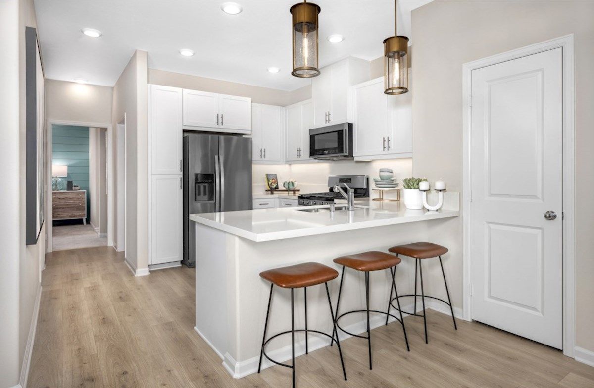 Cleo (1196 sq. ft.) is a condominium with 2 bedrooms, 2 bathrooms and -car garage.