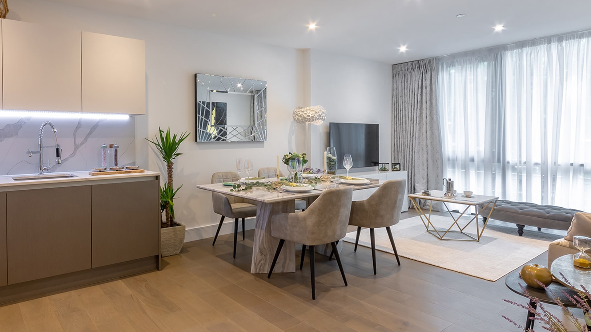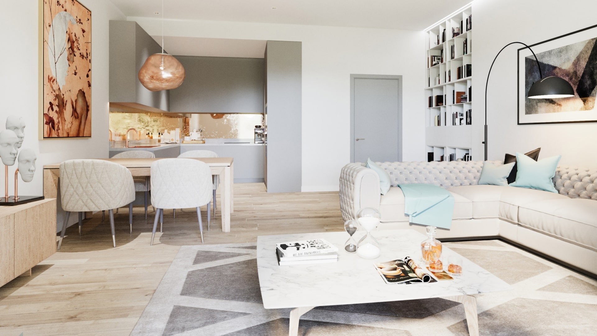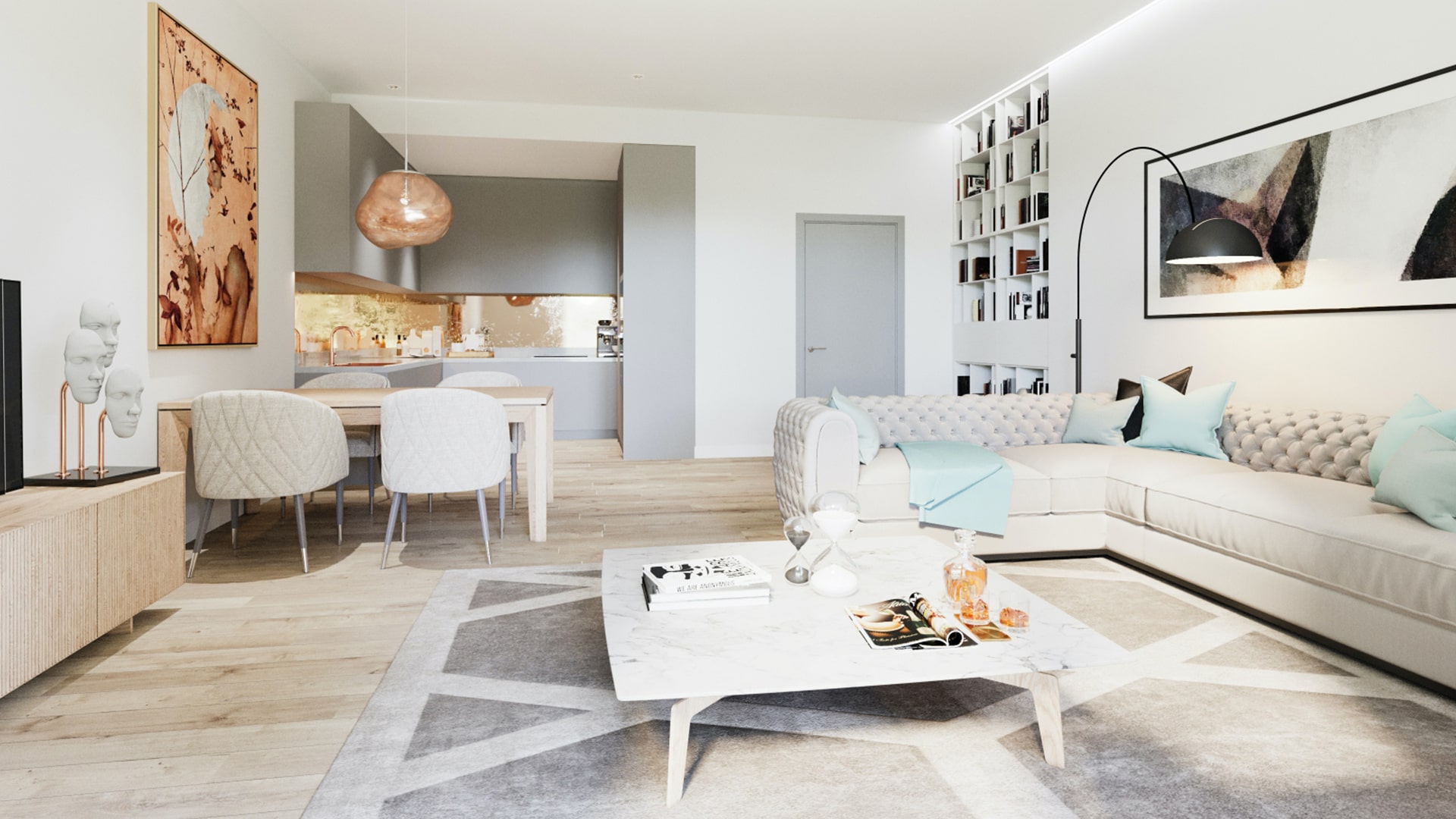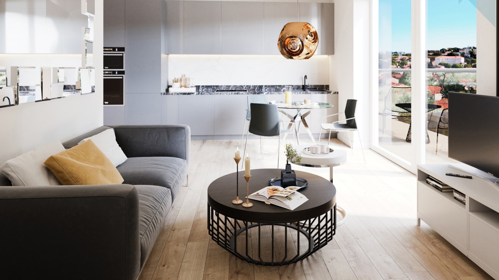 Heated towel railBathroom furnitureFitted sanitary wareFull bathroomBalconyFridgeMicrowave ovenOvenDishwasherFully fitted kitchenBathroom furnitureCarpetingCeramic tile in bathroomsWood flooringFloor heating in all roomsModern design