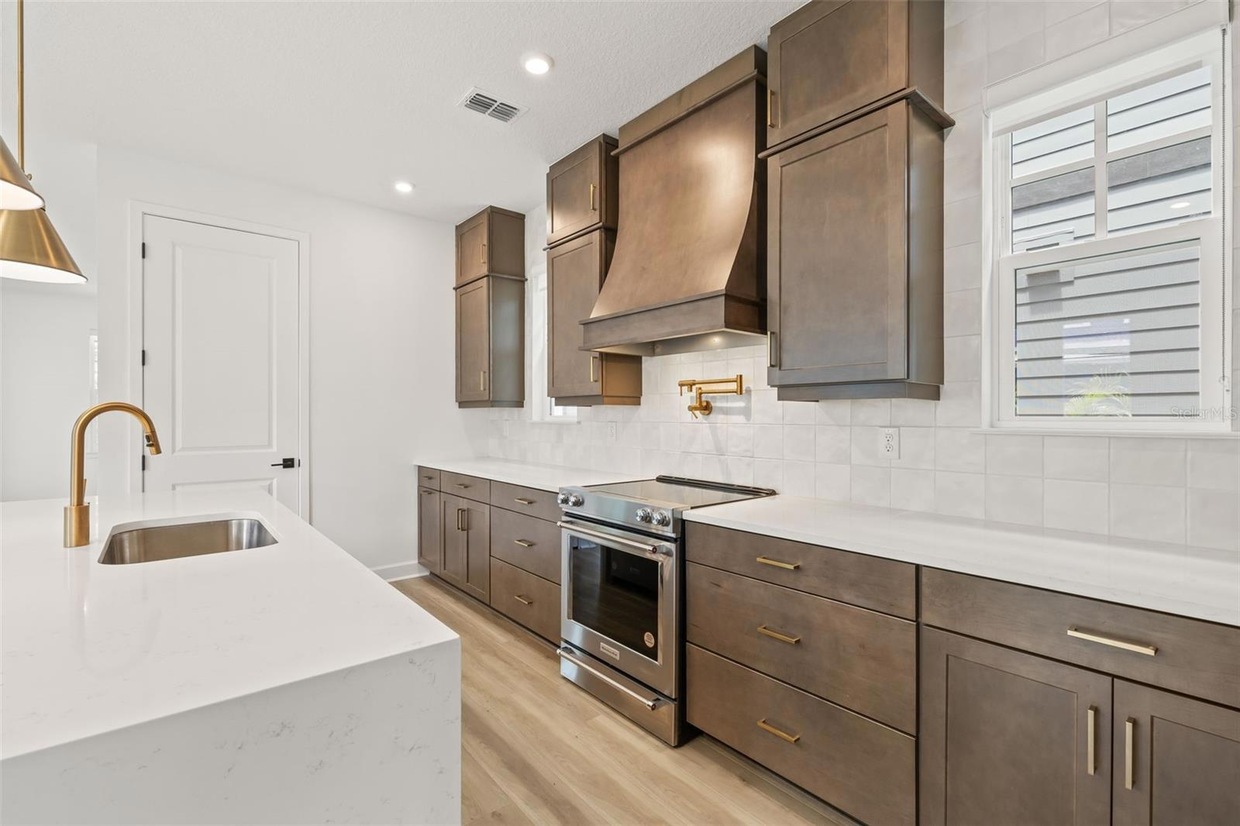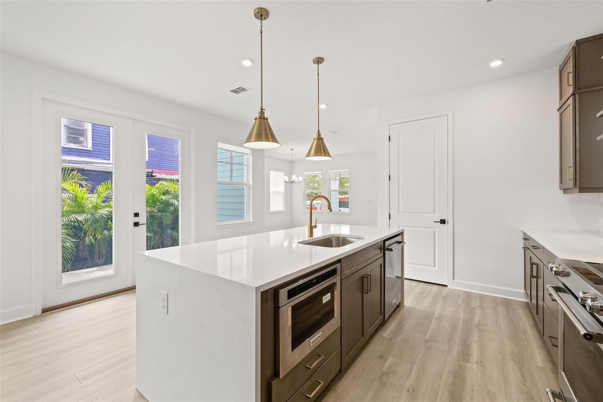David Weekley Homes presents a beautiful brand-new City Home in The Heights! This home is conveniently located near the Riverwalk, Armature Works, Tampa International Airport and Tampa General Hospital. All the entertainment and outdoor activity you could want within 3 miles or less. This home lives like a single-family home with only one shared wall and no HOA. There is a fenced in backyard with room for an outdoor kitchen, playset or just room for your fur baby to run! Imagine all the possibilities! This detailed elevation includes a variety of finishes, including the durable hardie plank, stucco, stone, and a very detailed roof line making this home visibly stunning! Your new home offers an open great room feel. What an amazing layout to entertain! With a large counter-height kitchen island, white cabinets, quartz countertops and a walk-in pantry, this kitchen is ready for a family meal or your next cocktail party. The nearly white walls and Revwood flooring provide a neutral palate for your own design ideas to shine through. The first floor includes an oversized family room overlooking the back yard, dining space, and open concept kitchen with a half bath. As you venture upstairs, you come to an open bonus room. What a great place for a playroom, home office or additional living. On one side of the home are two secondary bedrooms that share a bathroom and on the other side is the master bedroom with bathroom. This room is oversized with a tray ceiling and lots of natural light. The bathroom includes a walk-in shower, private water closet, double vanities, and a walk-in closet. Some extra special items included are flush mount LED lights, painted 2 car garage floor with anti-skid flakes and recessed niche in the shower! These little details help make this home a more efficient and more beautiful place to call home. We include a 1-year warranty on all defects in workmanship and materials, 2-year on all major mechanicals such as electrical, plumbing and HVAC and a 10-year structural warranty. This home is ready for move in soon! Call for your private showing today!